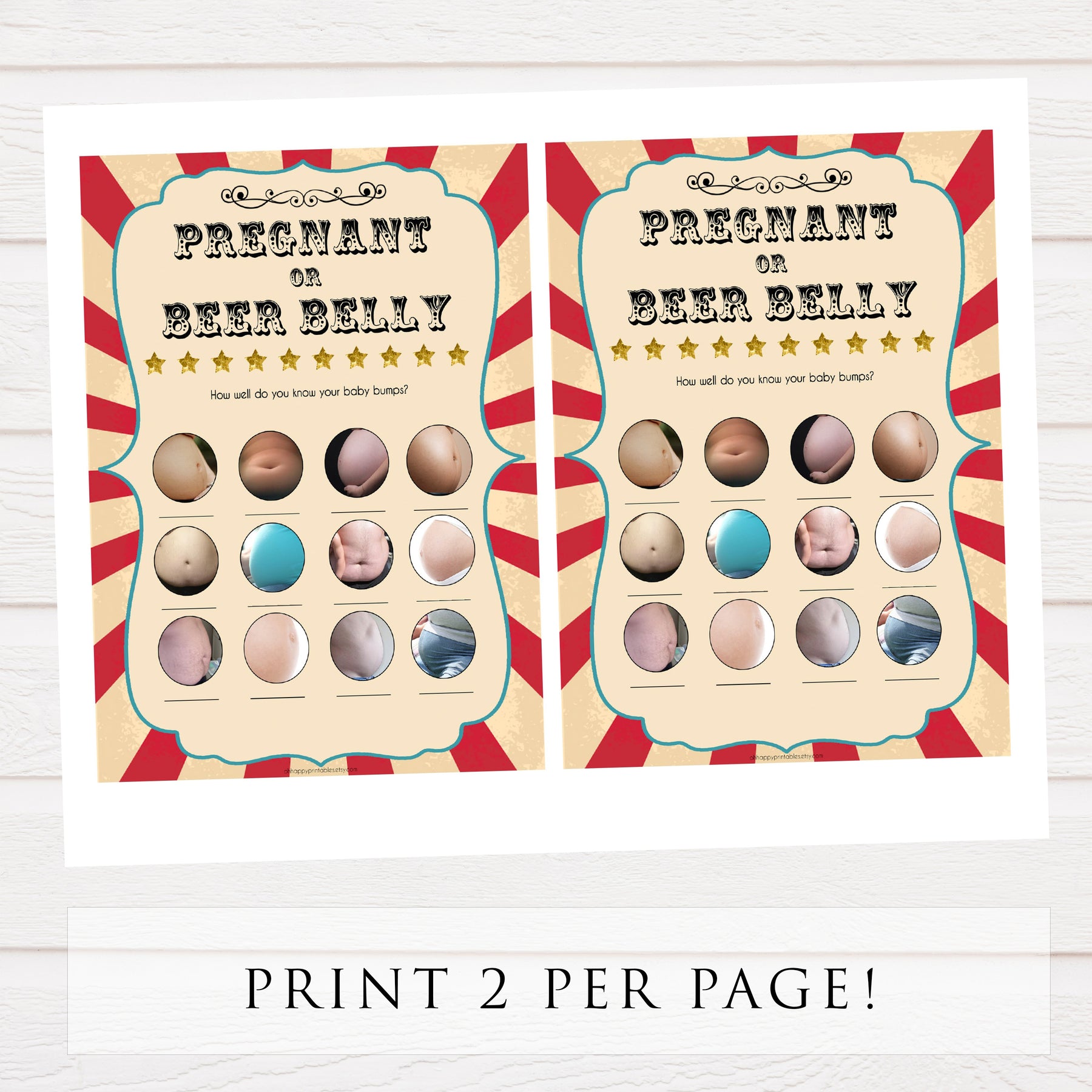 Our printable Pregnant or Beer Belly game is a hilarious baby shower game that's perfect for those who like to have a bit of fun! Guess whether the picture is of baby bump, or a belly full of beer! Our Pregnant or Beer Belly game comes complete with answer sheet, and is available in two sizes. All you need to do is download and print at home, it couldn't be easier.