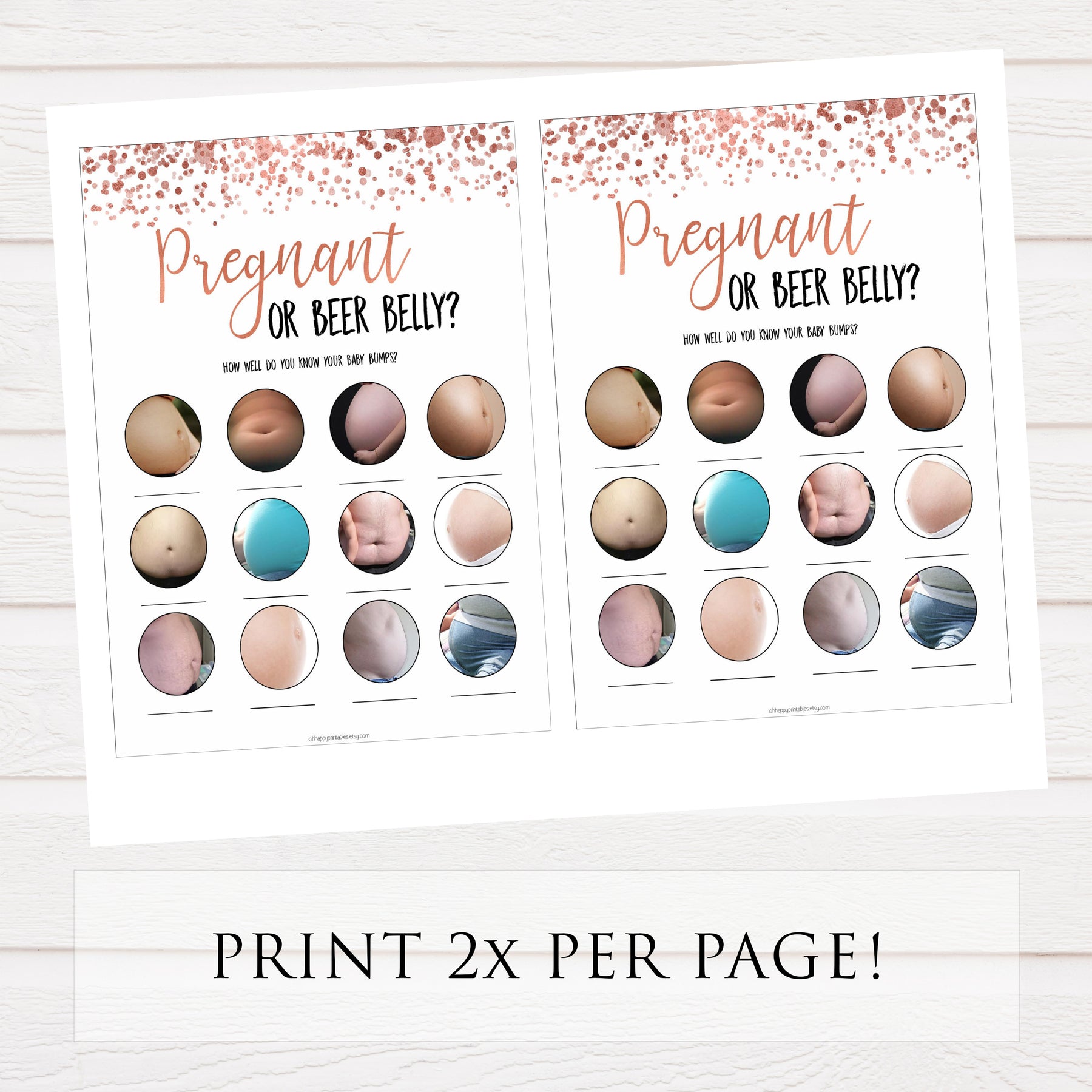 Pregnant or Beer Belly, Baby Shower Games, Baby Bump Beer Belly, Pregnant or Beer Belly Game, Beer Belly Pregnant, Rose Gold, Baby Games, printable baby shower games, fun baby shower games, popular baby shower games