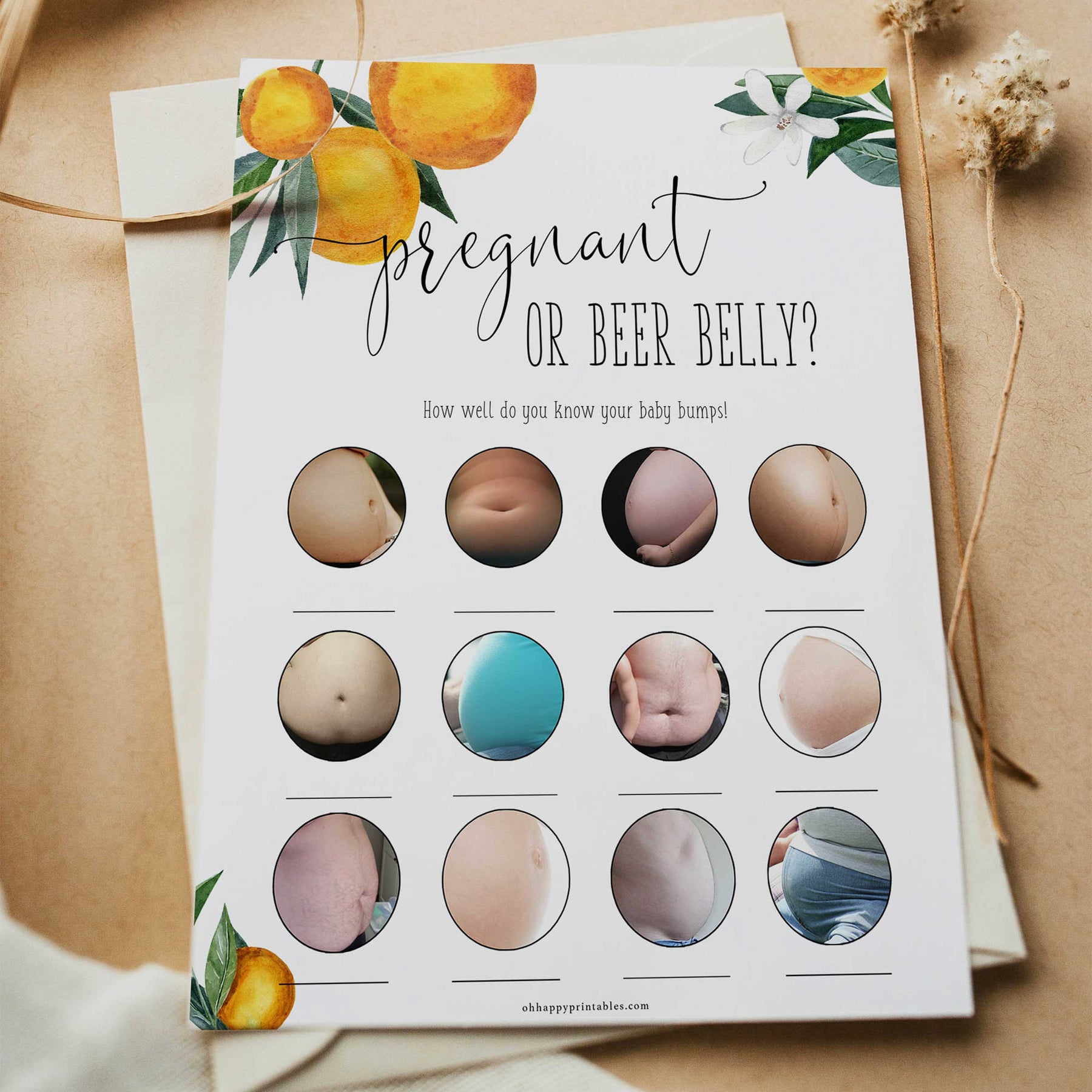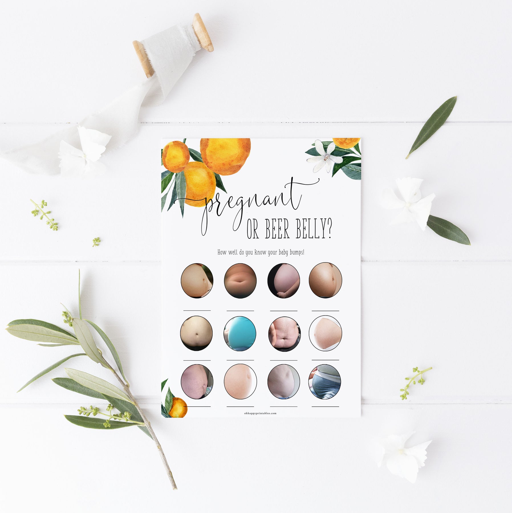 Our printable Pregnant or Beer Belly game is a hilarious baby shower game that's perfect for those who like to have a bit of fun! Guess whether the picture is of baby bump, or a belly full of beer! Our Pregnant or Beer Belly game comes complete with answer sheet, and is available in two sizes. All you need to do is download and print at home, it couldn't be easier.