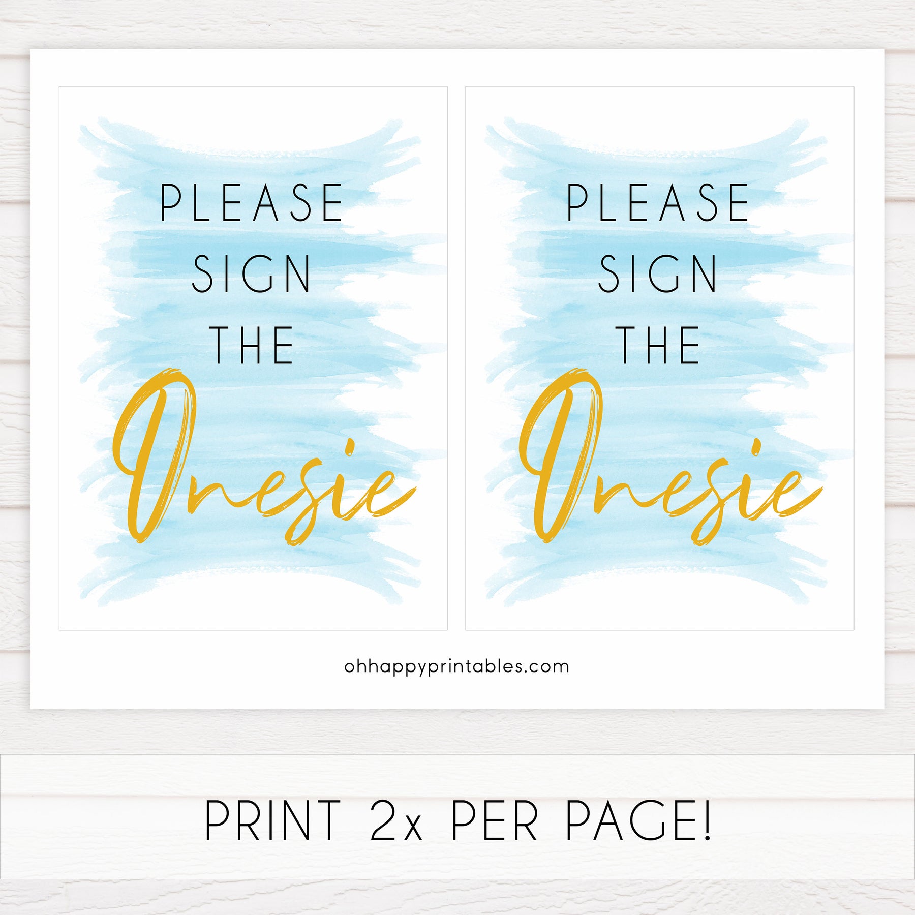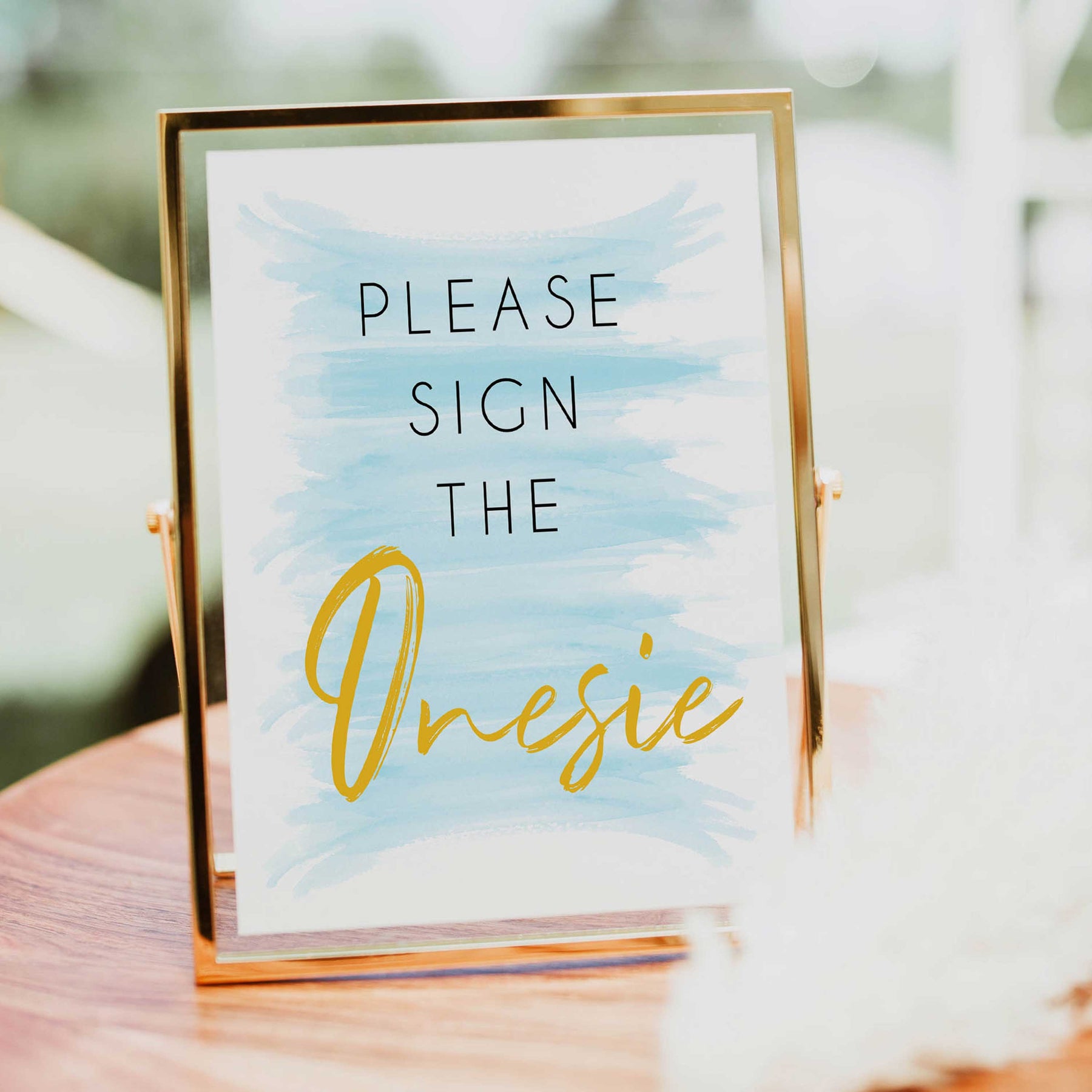 Ask your guests to sign a onesie for the new baby with this gorgeous printable sign. Provide a onesie and some colourful markers and let the guests use the onesie as a cute and colourful guest book for your baby shower.