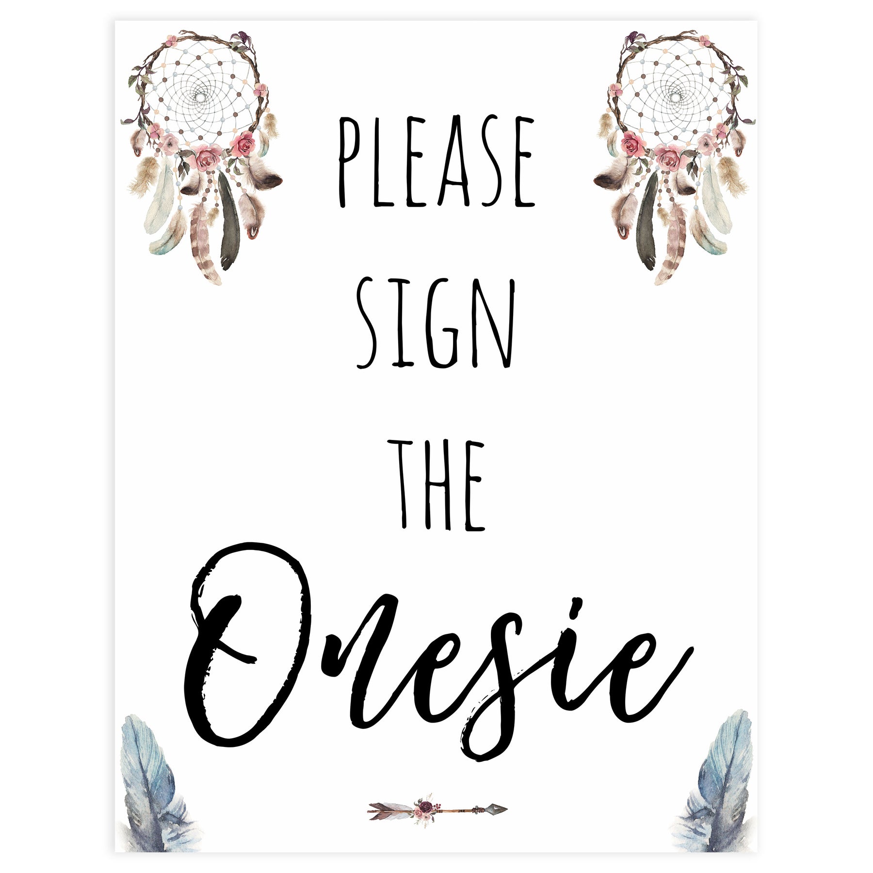 please sign the onesie, sign the onesie, Printable baby shower games, boho baby shower games, dreamcatcher baby games, fun baby shower games, top baby shower ideas
