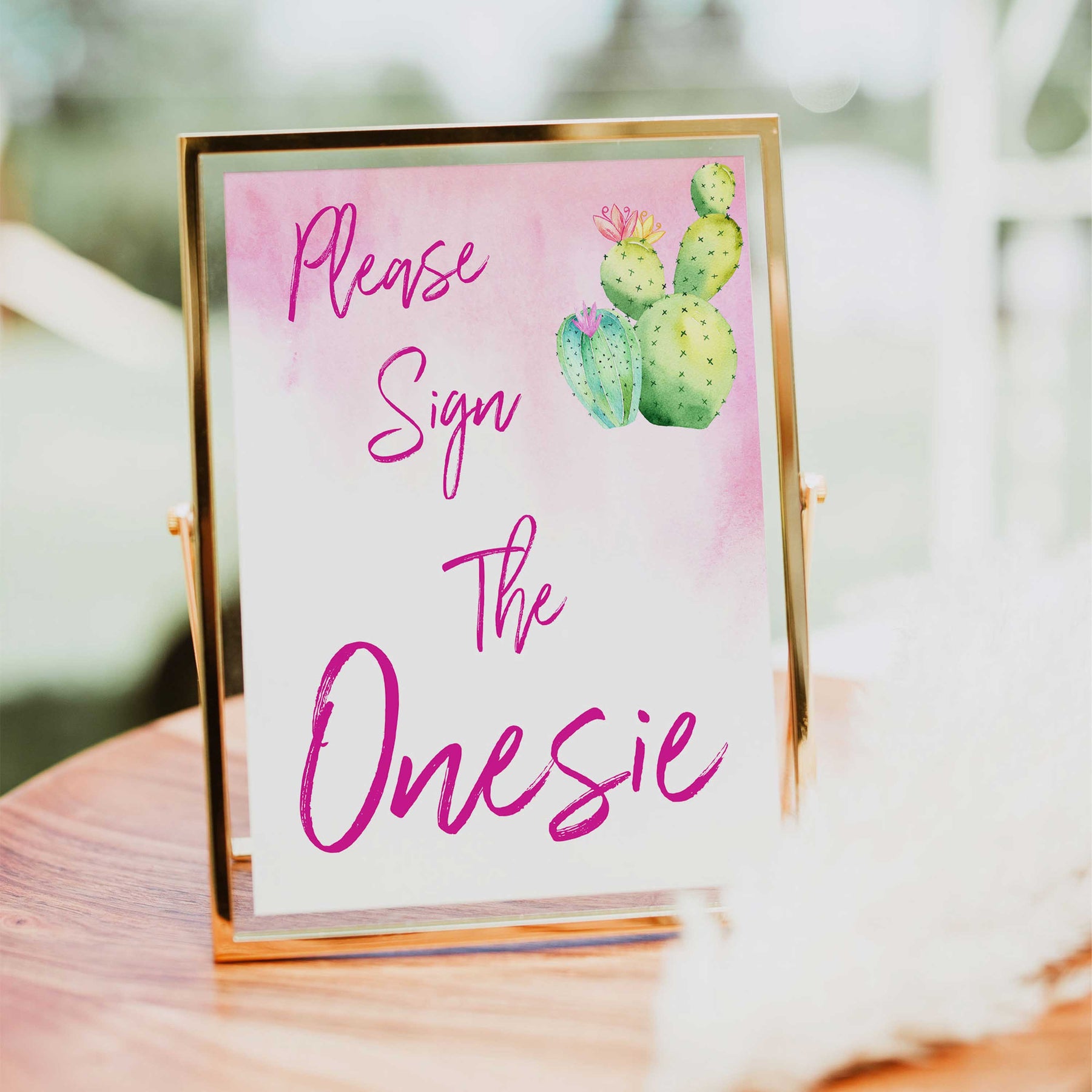 Ask your guests to sign a onesie for the new baby with this gorgeous printable sign. Provide a onesie and some colourful markers and let the guests use the onesie as a cute and colourful guest book for your baby shower.