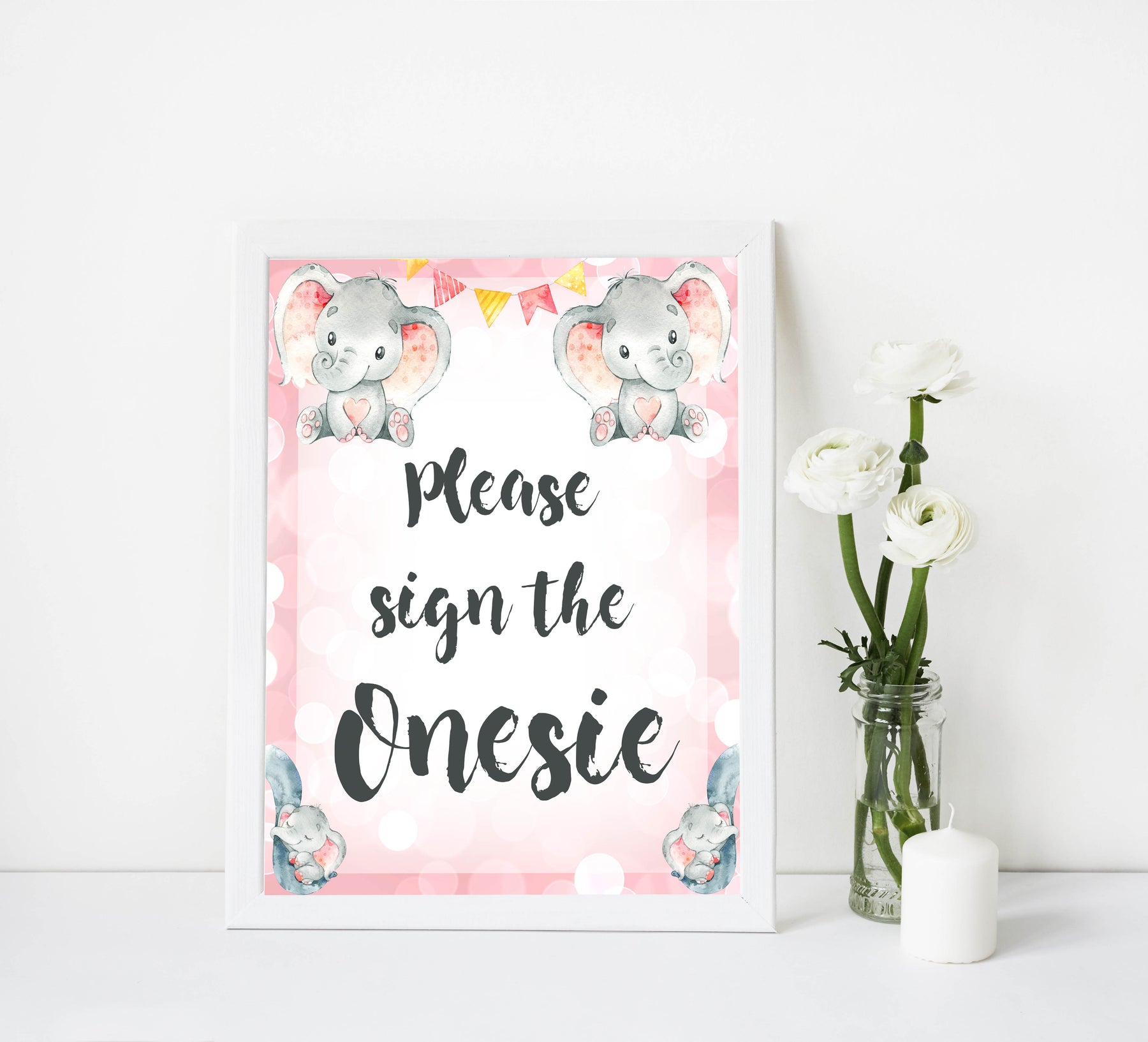 Please sign the onesie, Printable baby shower games, fun abby games, baby shower games, fun baby shower ideas, top baby shower ideas, pink elephant baby shower, pink baby shower ideas