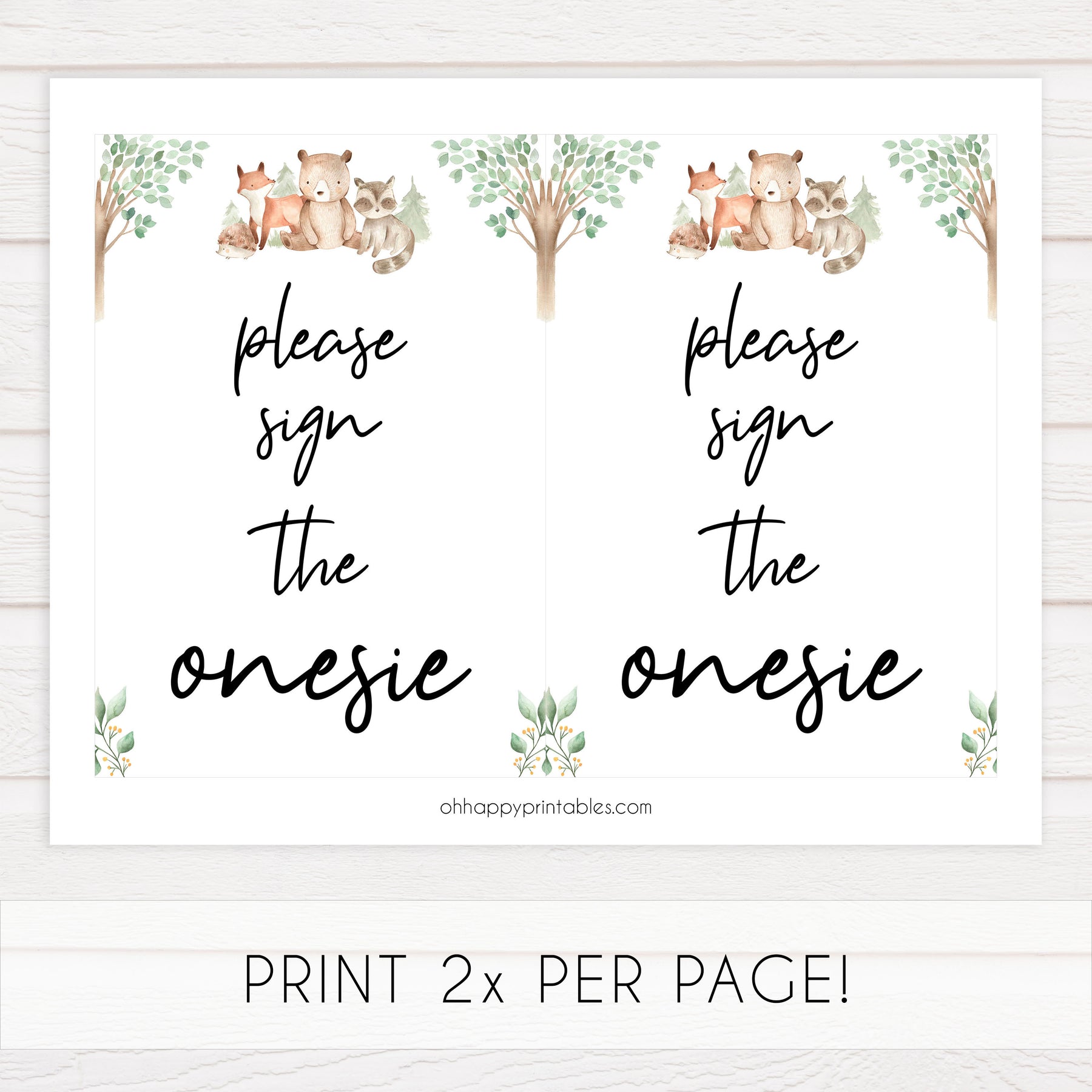 sign the onesie sign, Printable baby shower games, woodland animals baby games, baby shower games, fun baby shower ideas, top baby shower ideas, woodland baby shower, baby shower games, fun woodland animals baby shower ideas