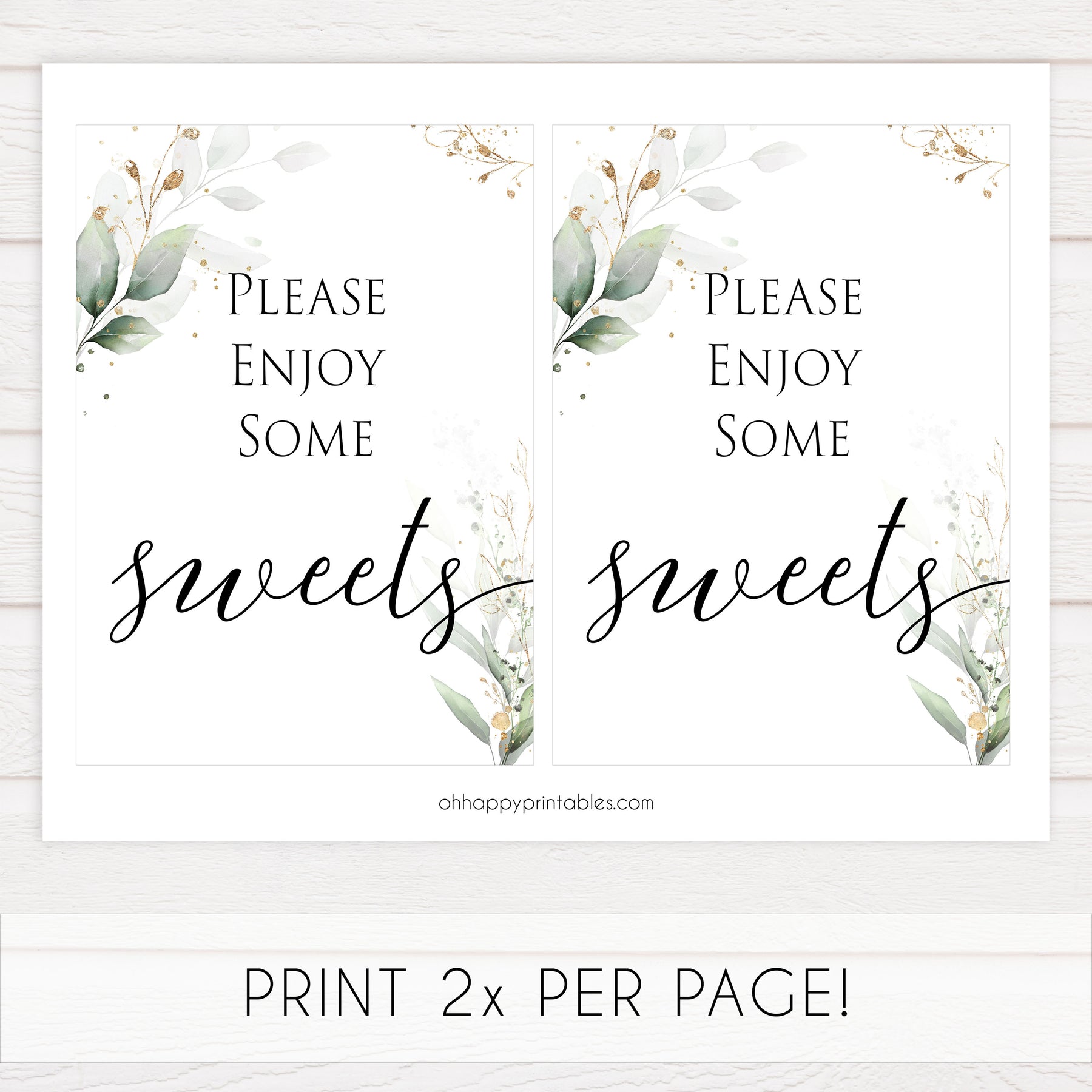 Sweets Sign - Gold & Green Leaf