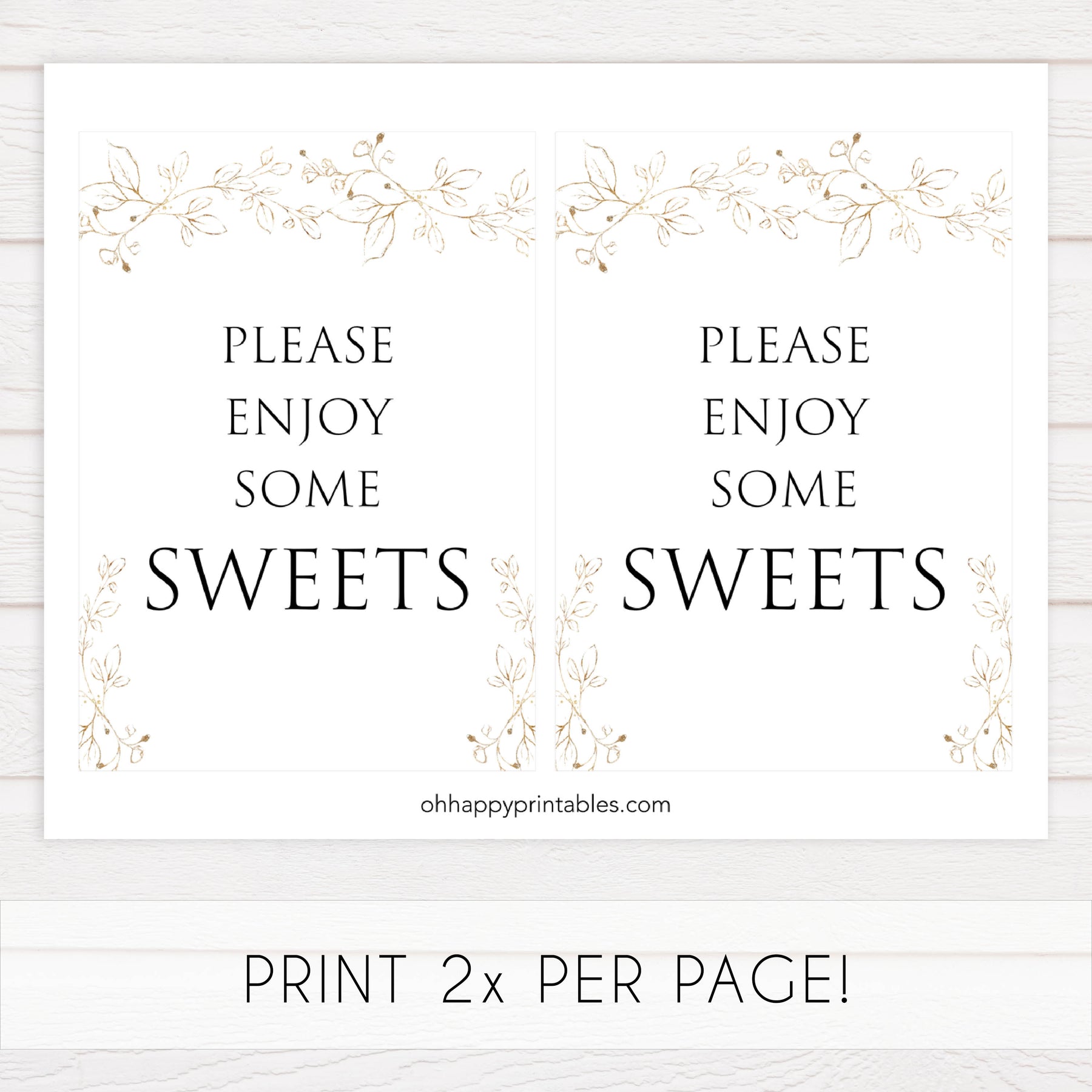 sweets baby shower table signs, Gold leaf baby decor, printable baby table signs, printable baby decor, baby gold leaf table signs, fun baby signs, baby gold leaf fun baby table signs
