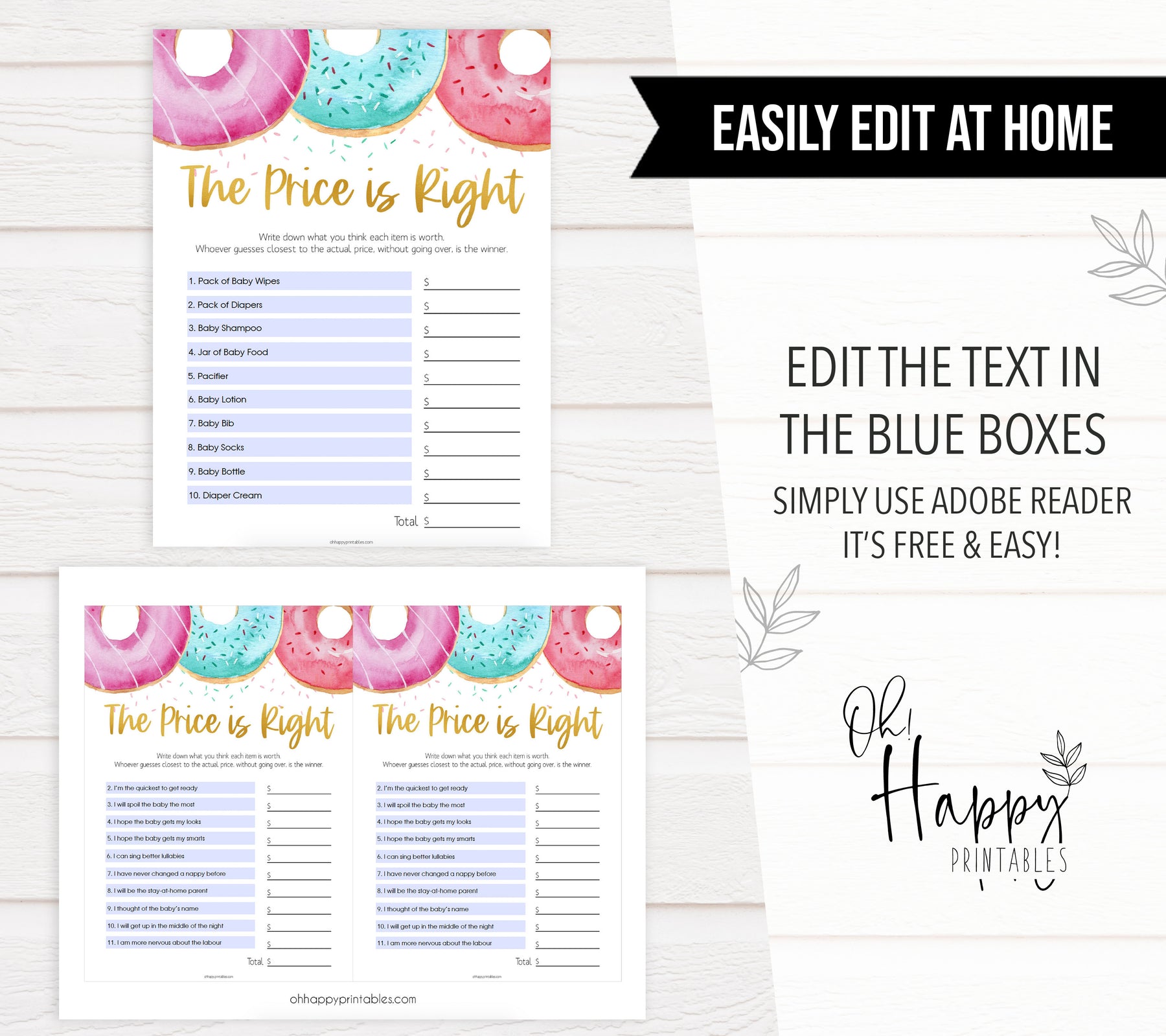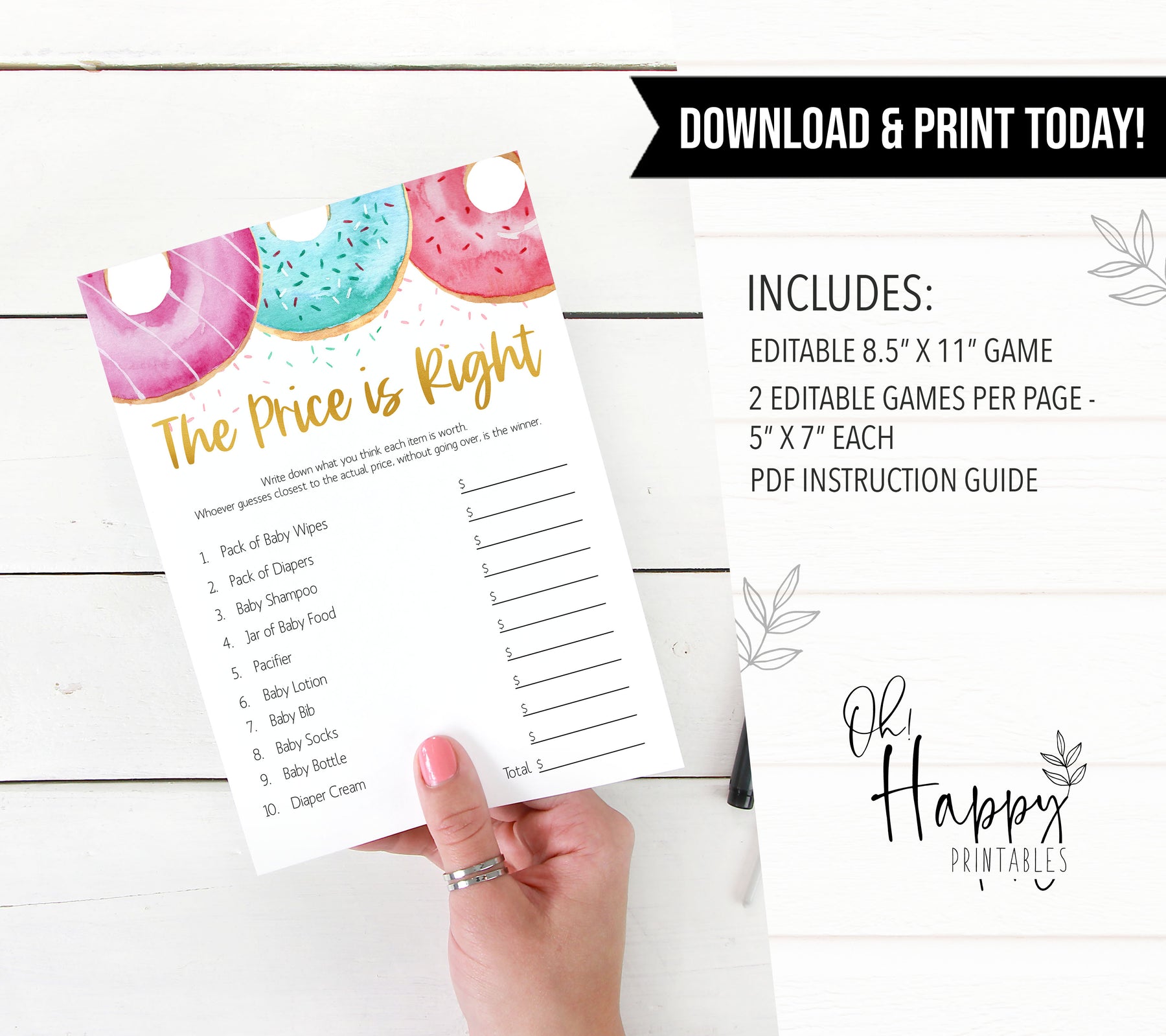 editable baby shower games, the price is right baby game, Printable baby shower games, donut baby games, baby shower games, fun baby shower ideas, top baby shower ideas, donut sprinkles baby shower, baby shower games, fun donut baby shower ideas