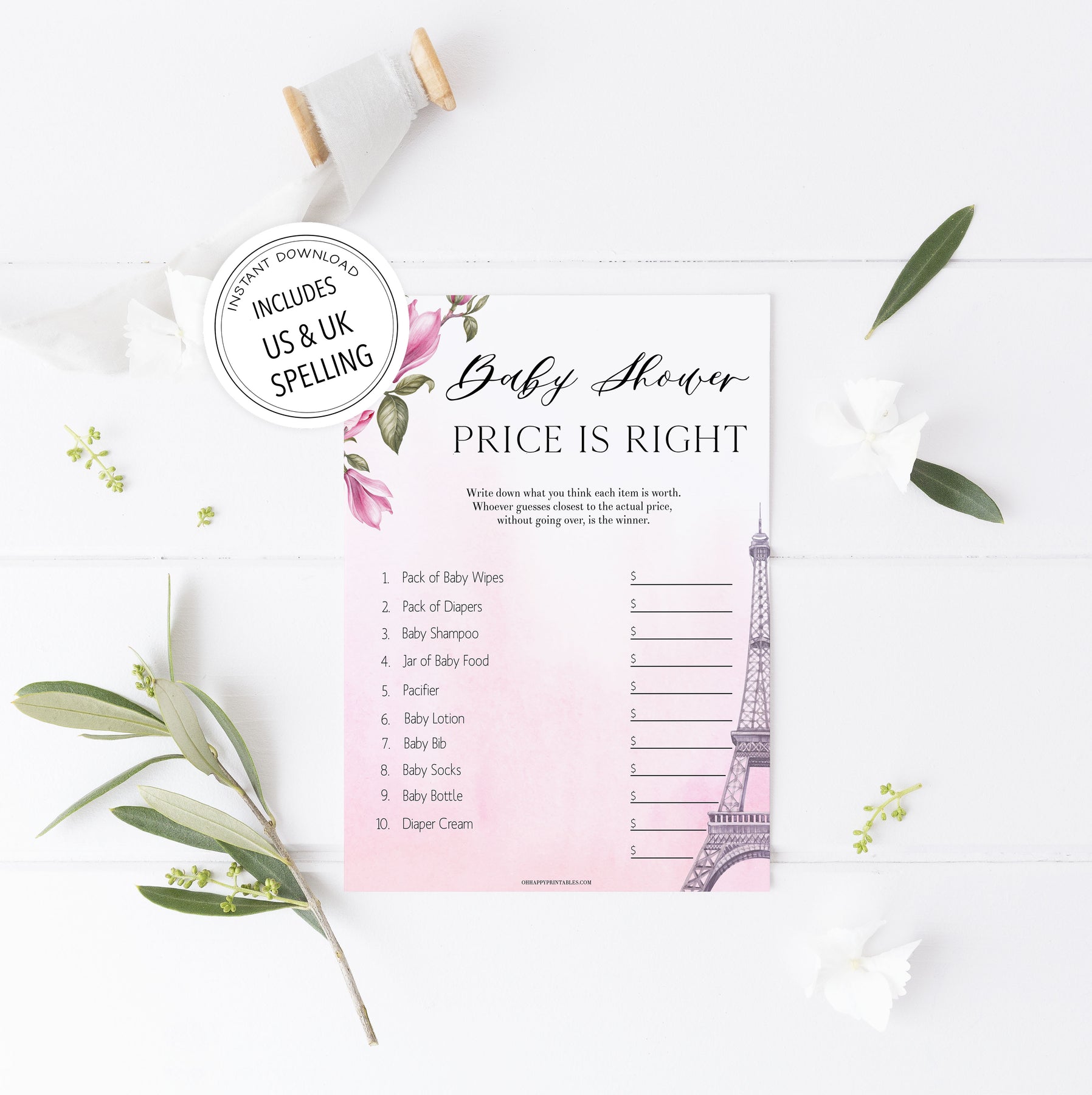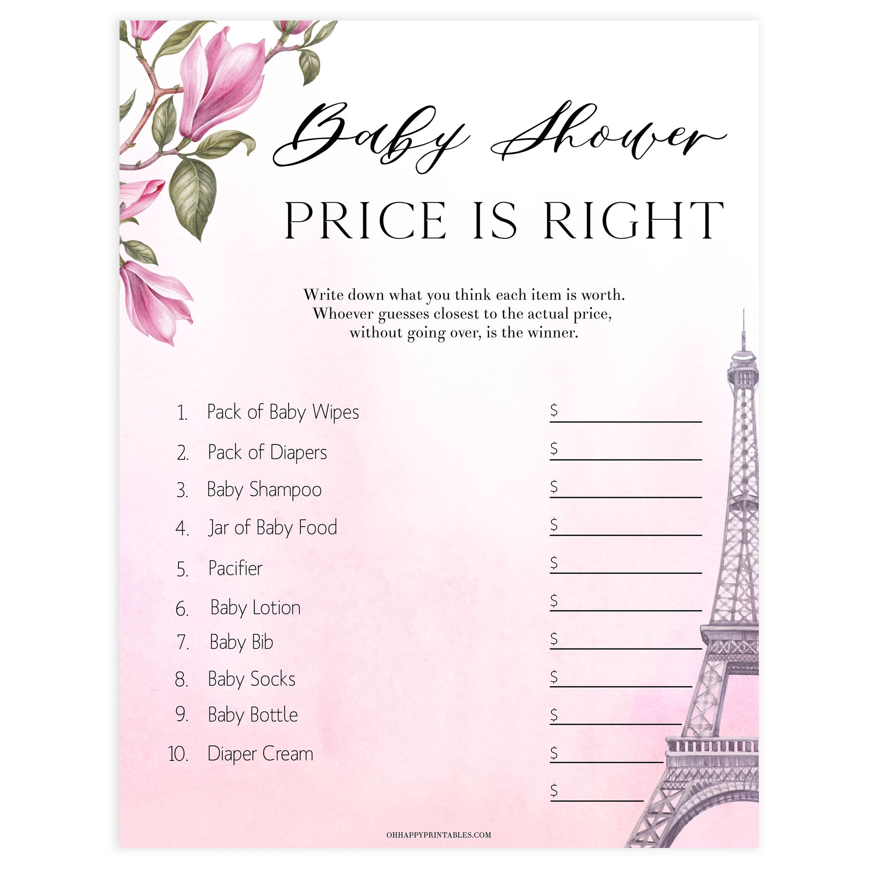 price is right baby shower game, Paris baby shower games, printable baby shower games, Parisian baby shower games, fun baby shower games