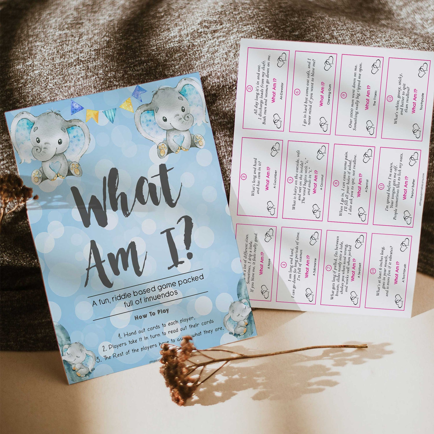 This Innuendo What Am I? Baby Shower game is the perfect ice breaker to get to know and laugh with all your friends, or are a great way to keep the night going into the early hours.