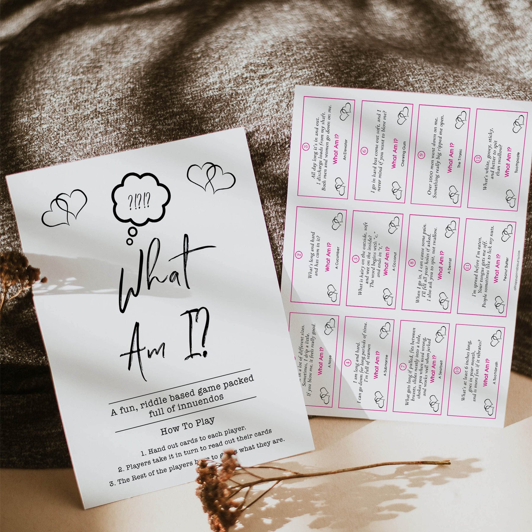 3 files to print including the 2 pages of 12 innuendo riddles, 24 in total, and 1 rules page.
