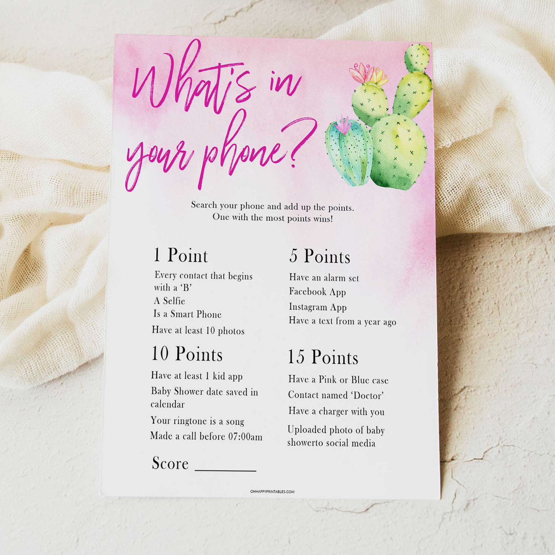 Cactus baby shower games, cactus whats in your phone baby game, printable baby games, Mexican baby shower, Mexican baby games, fiesta baby games, popular baby games, printable baby games