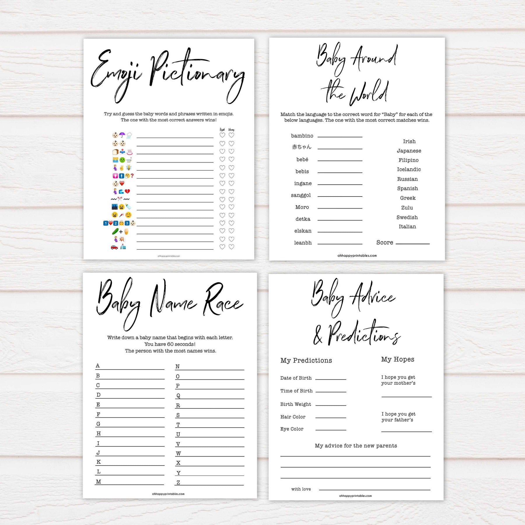 Get all your baby shower party games in one place with this gorgeous baby shower games pack. Featuring 9 of our most popular games, all you need to do is download and print at home.