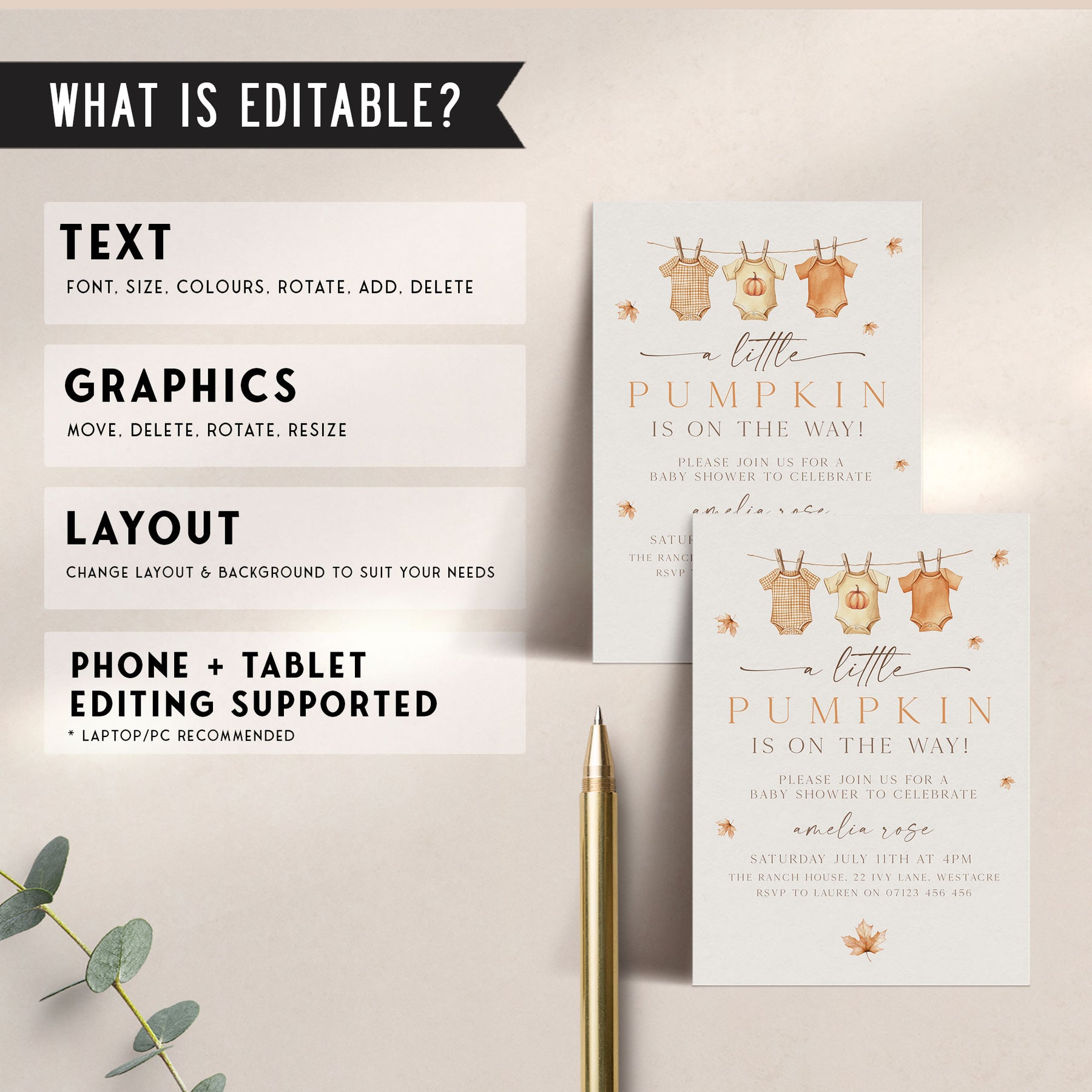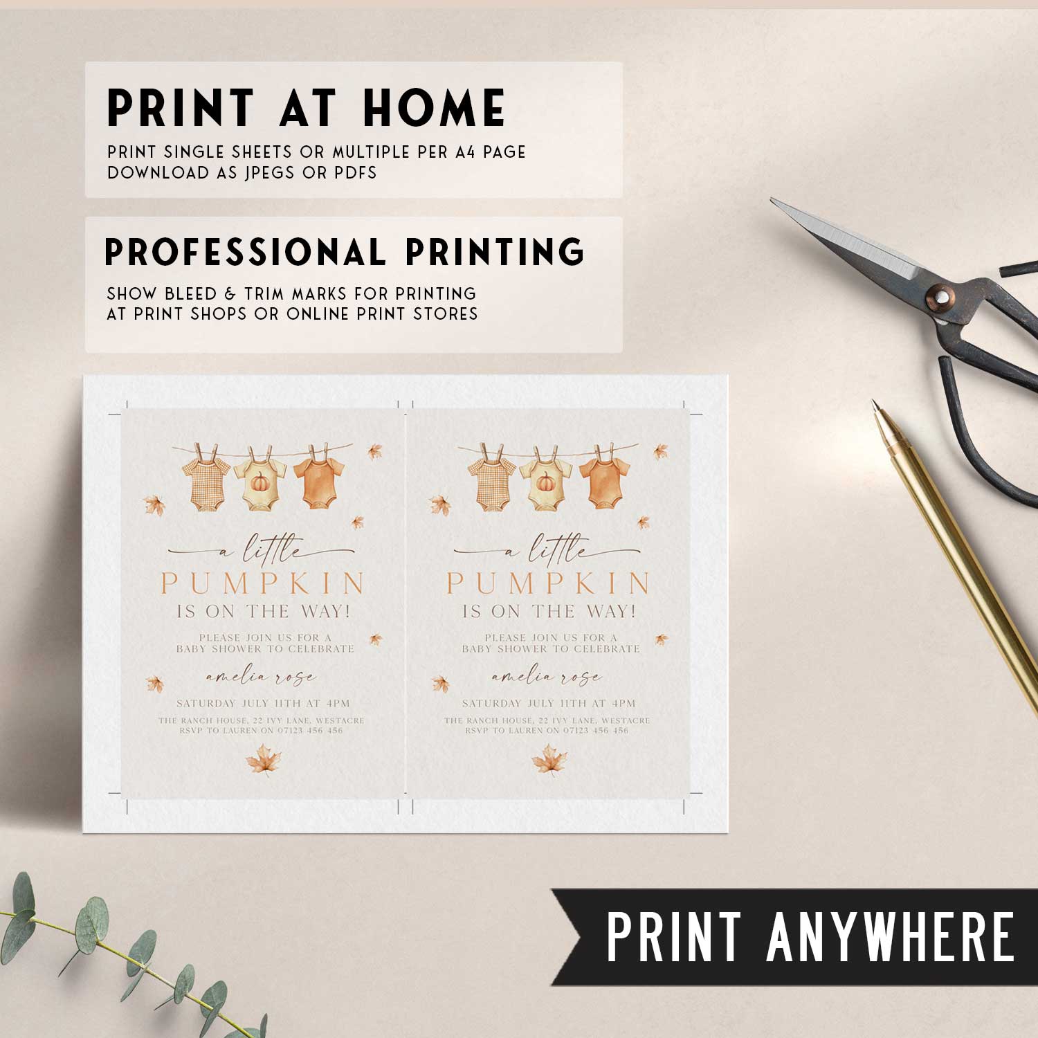 Celebrate the joy of new beginnings with our Little Pumpkin Fall baby shower invitation, adorned with gorgeous illustrations. This editable invitation is perfect for welcoming the arrival of a precious little one. Customise effortlessly and print today, it couldn't be easier.