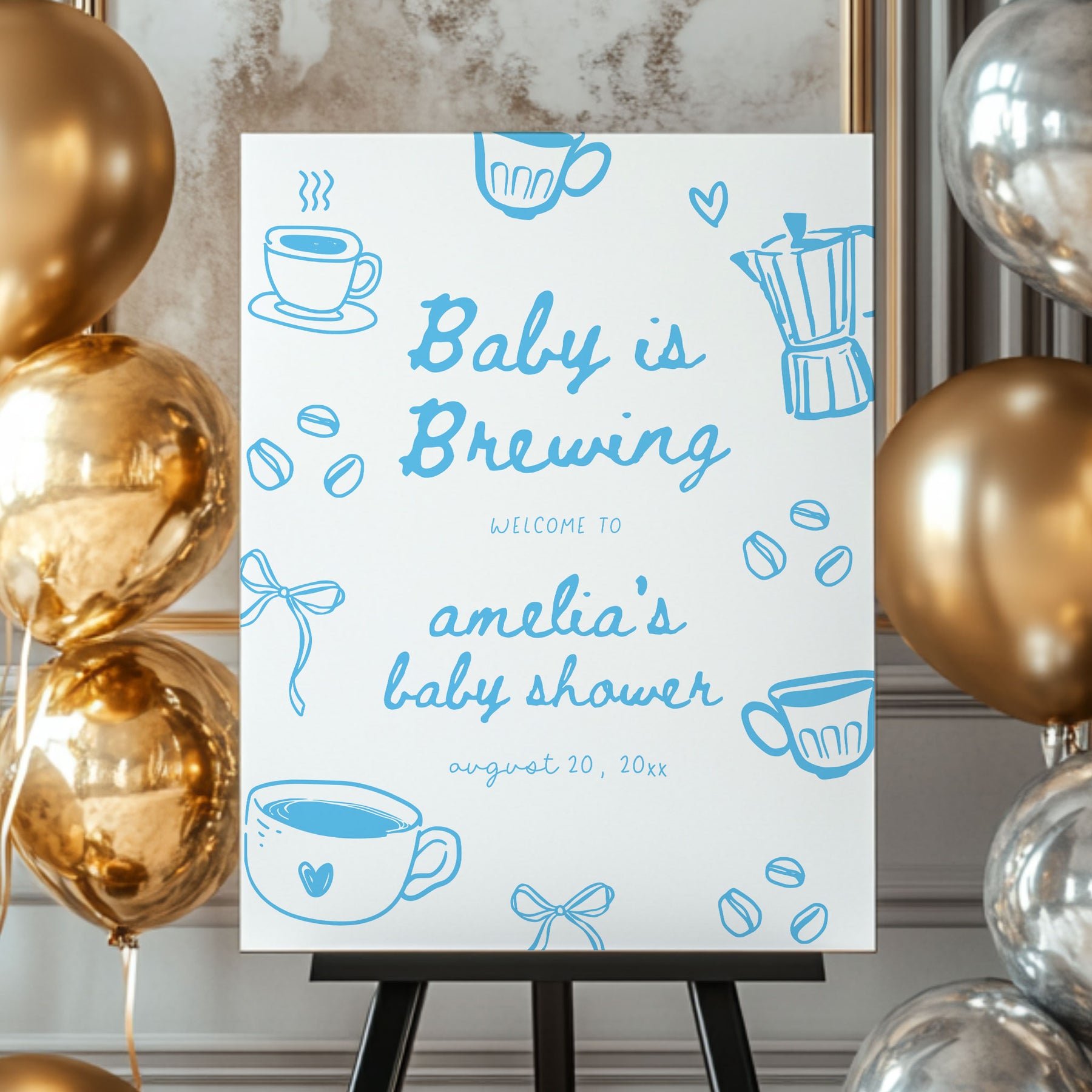 Blue Doodle A Baby Is Brewing Baby Shower Welcome Sign