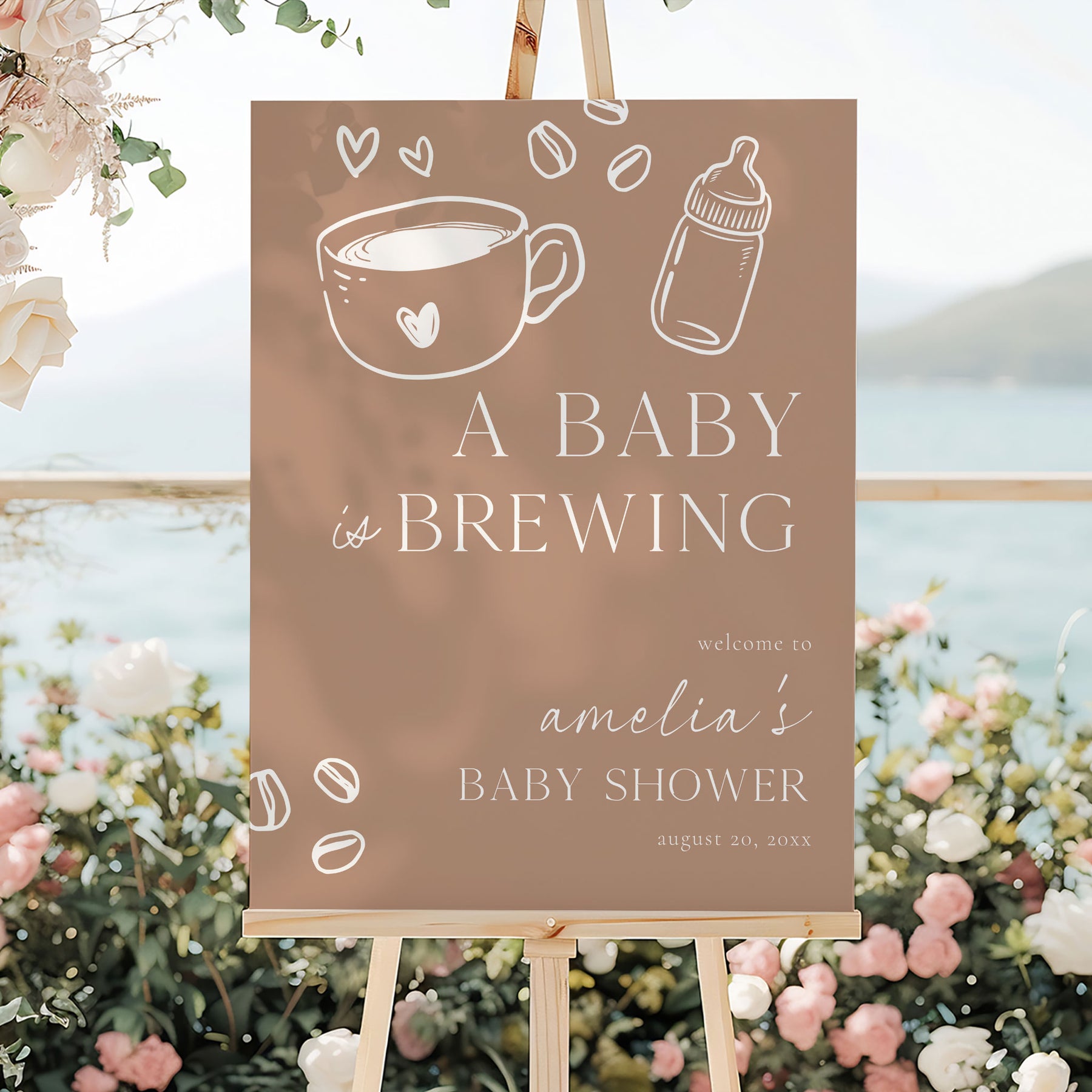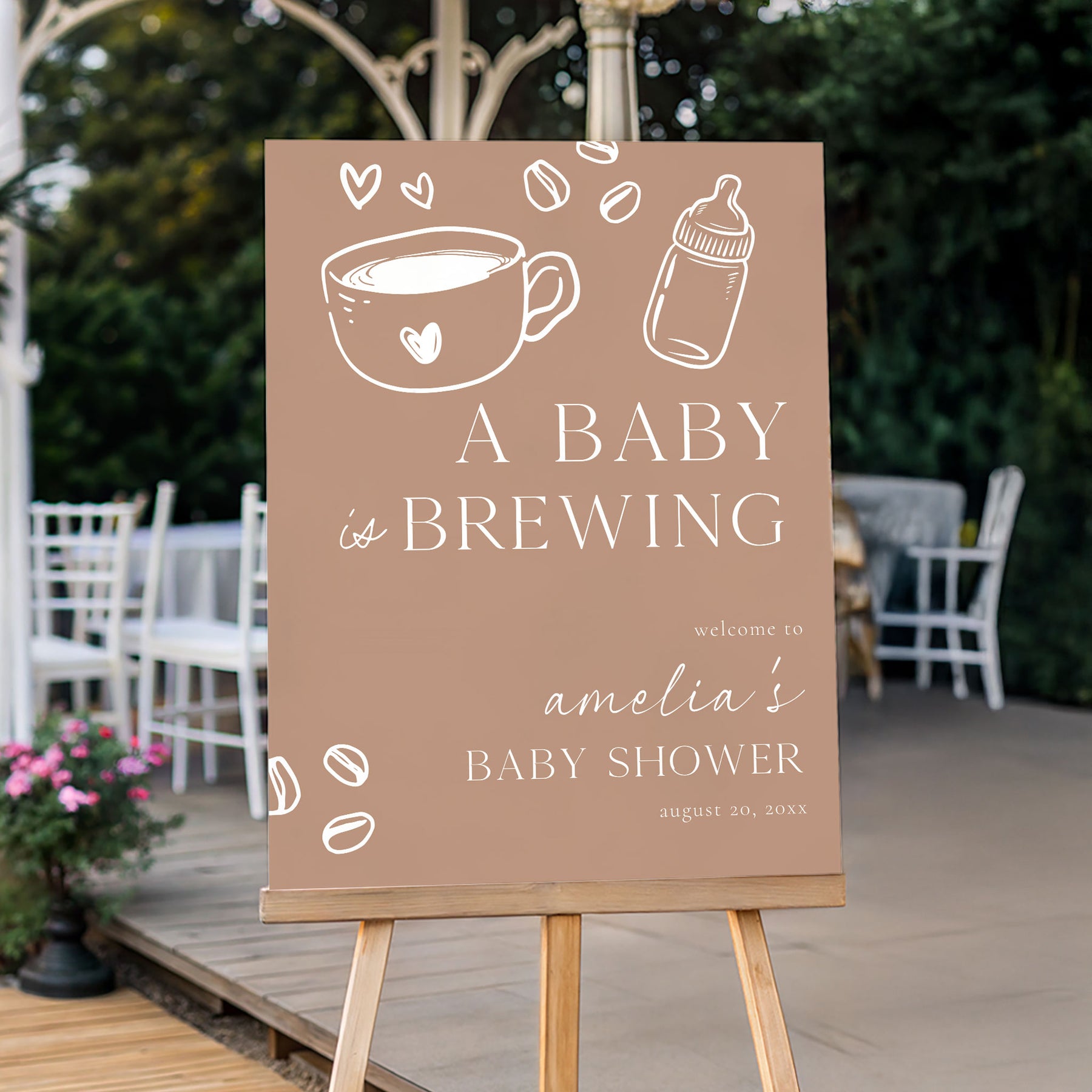 Introducing our editable A Baby Is Brewing Baby Shower Welcome Sign editable template. This is the perfect addition to your little ones baby shower. This fully editable sign can be customised to fit your unique style and preferences, allowing you to add your own text, change the font, and layout.