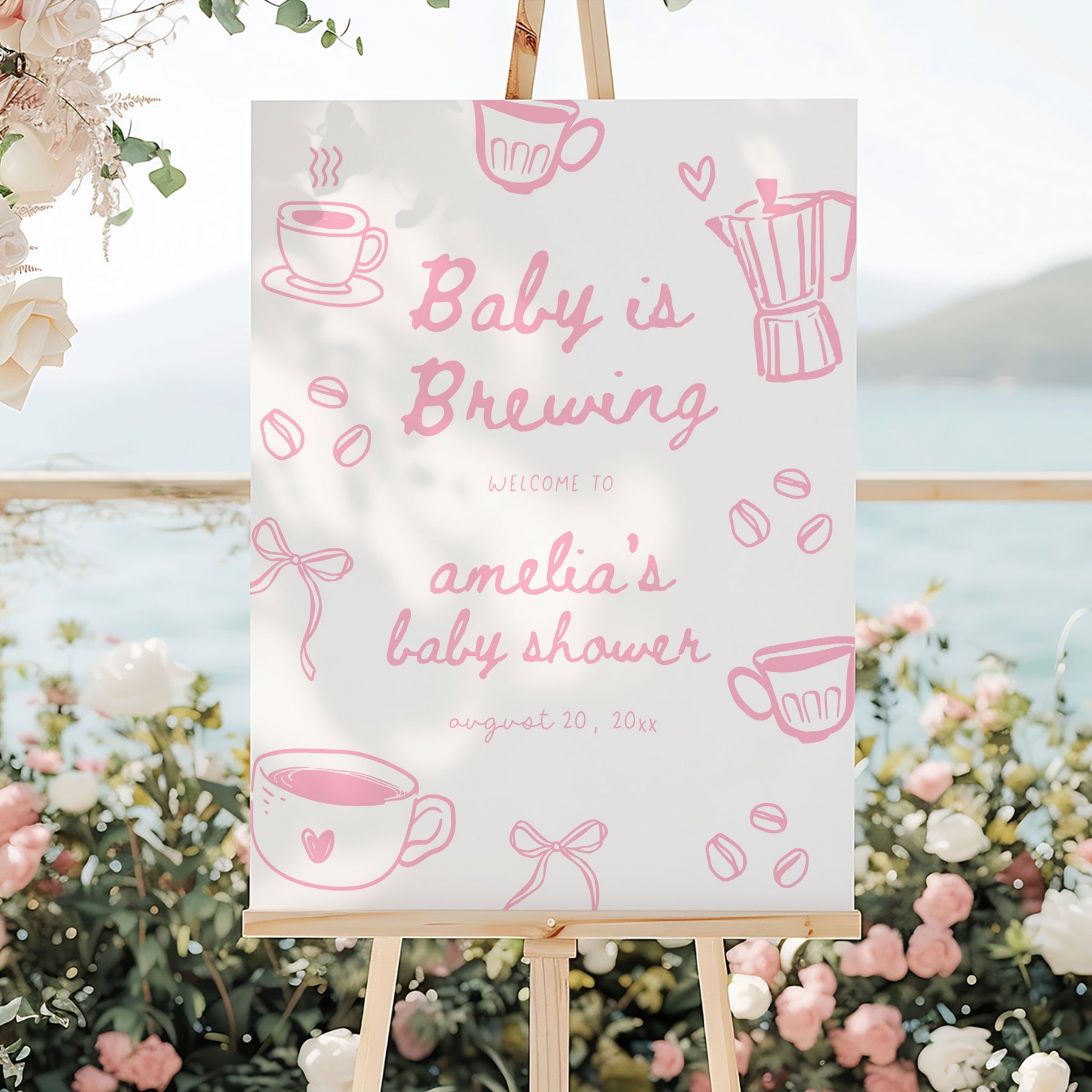 Introducing our editable A Baby Is Brewing Baby Shower Welcome Sign editable template. This is the perfect addition to your little ones baby shower. This fully editable sign can be customised to fit your unique style and preferences, allowing you to add your own text, change the font, and layout.