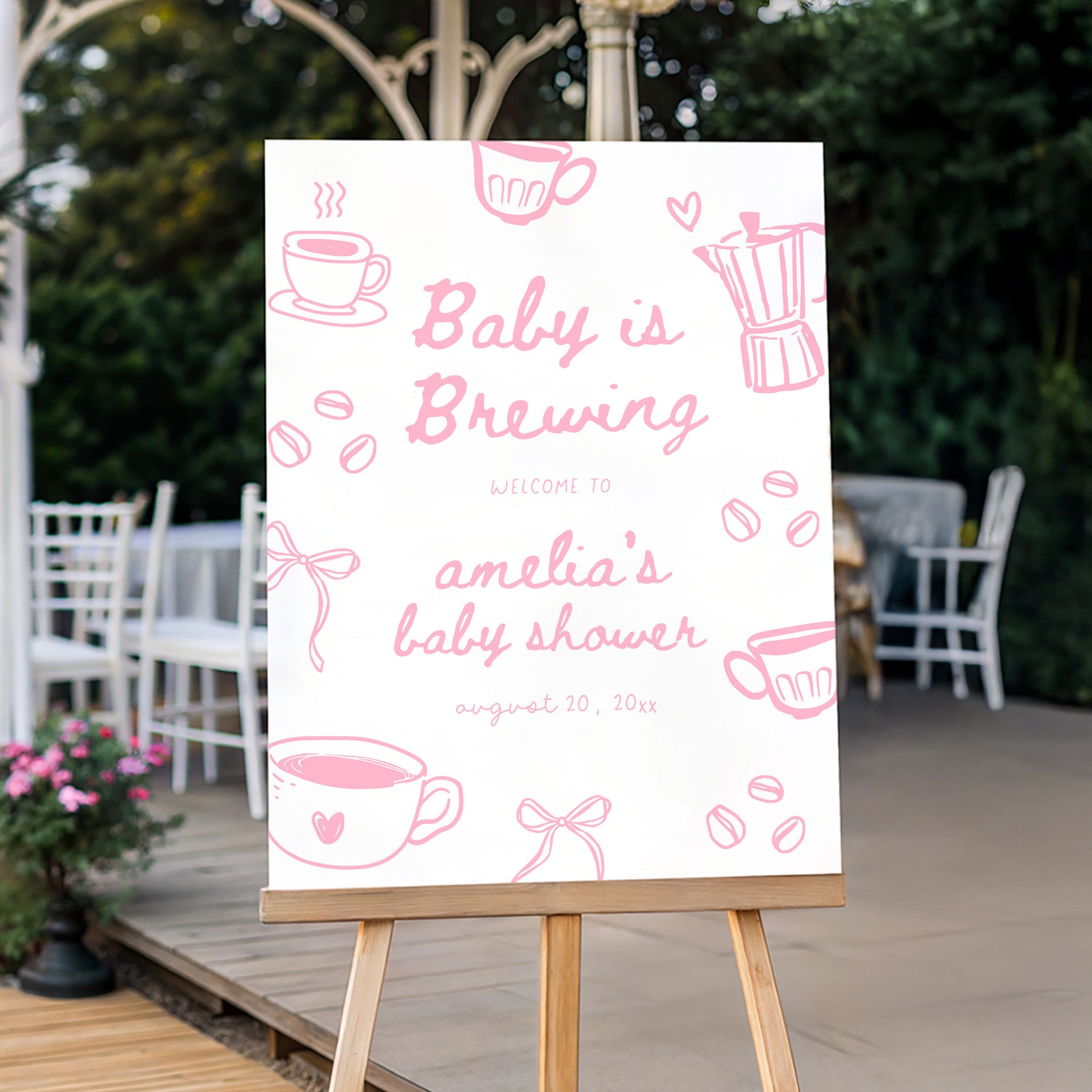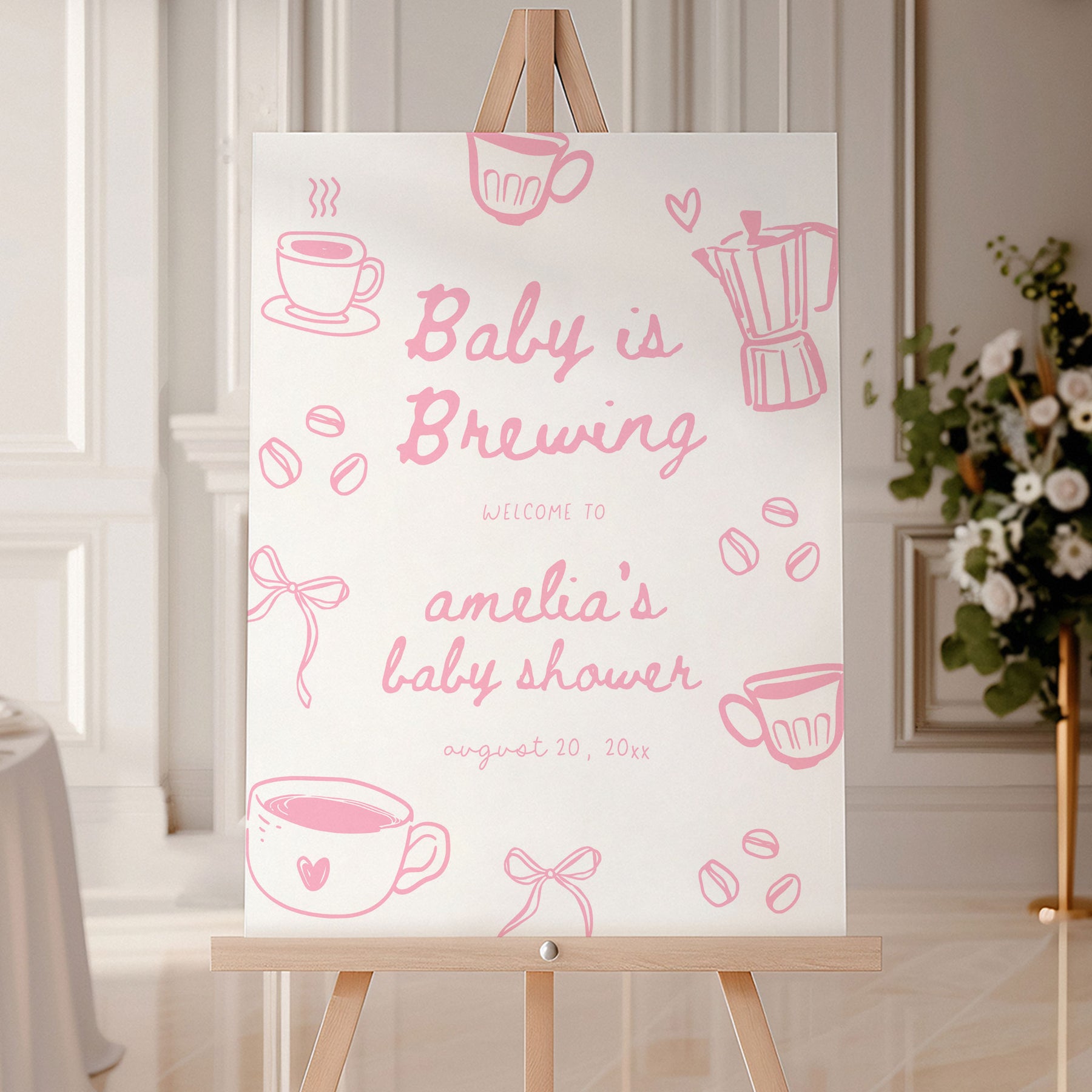 Pink Doodle A Baby Is Brewing Baby Shower Welcome Sign