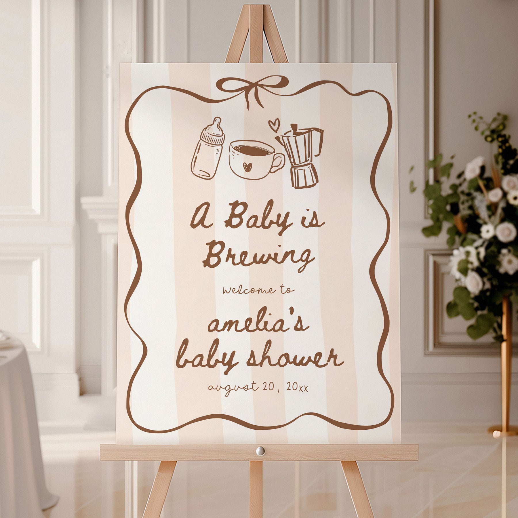 Striped Baby Is Brewing Baby Shower Welcome Sign