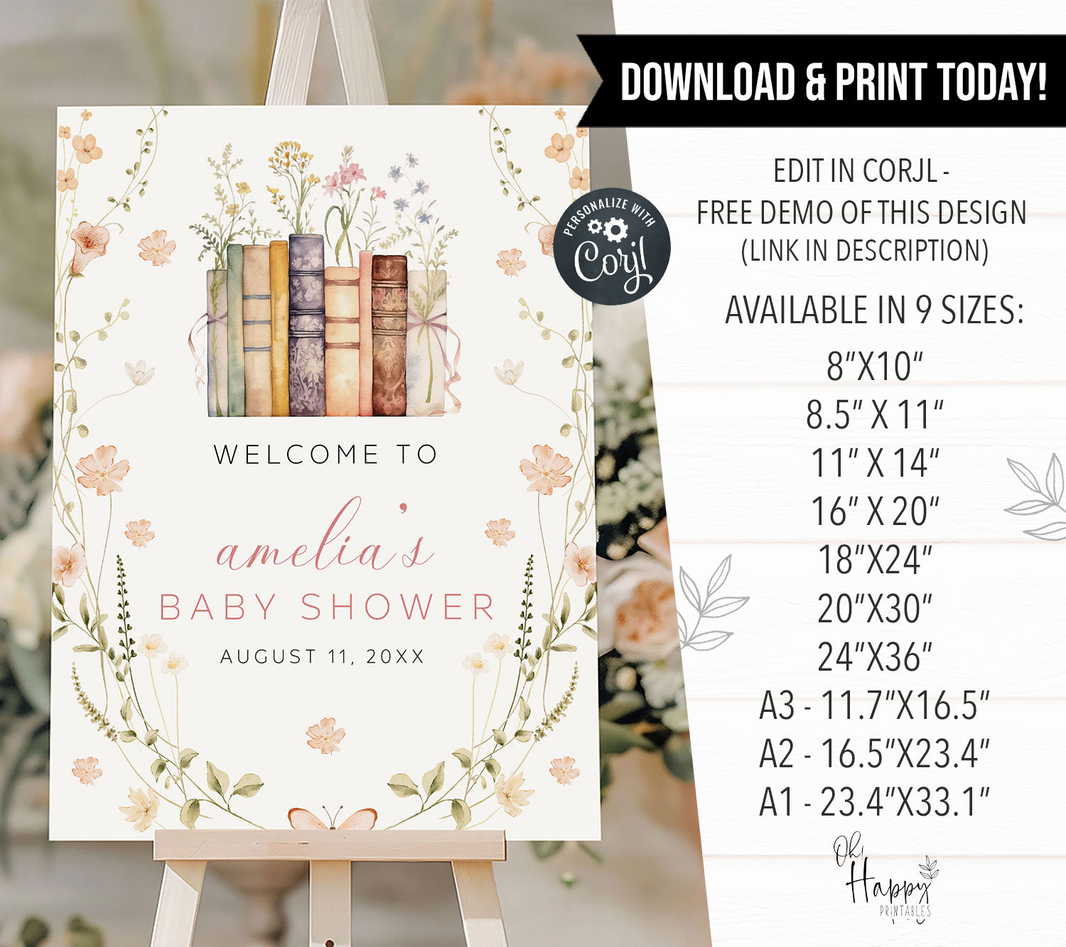 Introducing our editable A New Chapter Begins Baby Shower Welcome Sign. This is the perfect addition to your baby shower. This fully editable sign can be customised to fit your unique style and preferences, allowing you to add your own text, change the font, and layout.