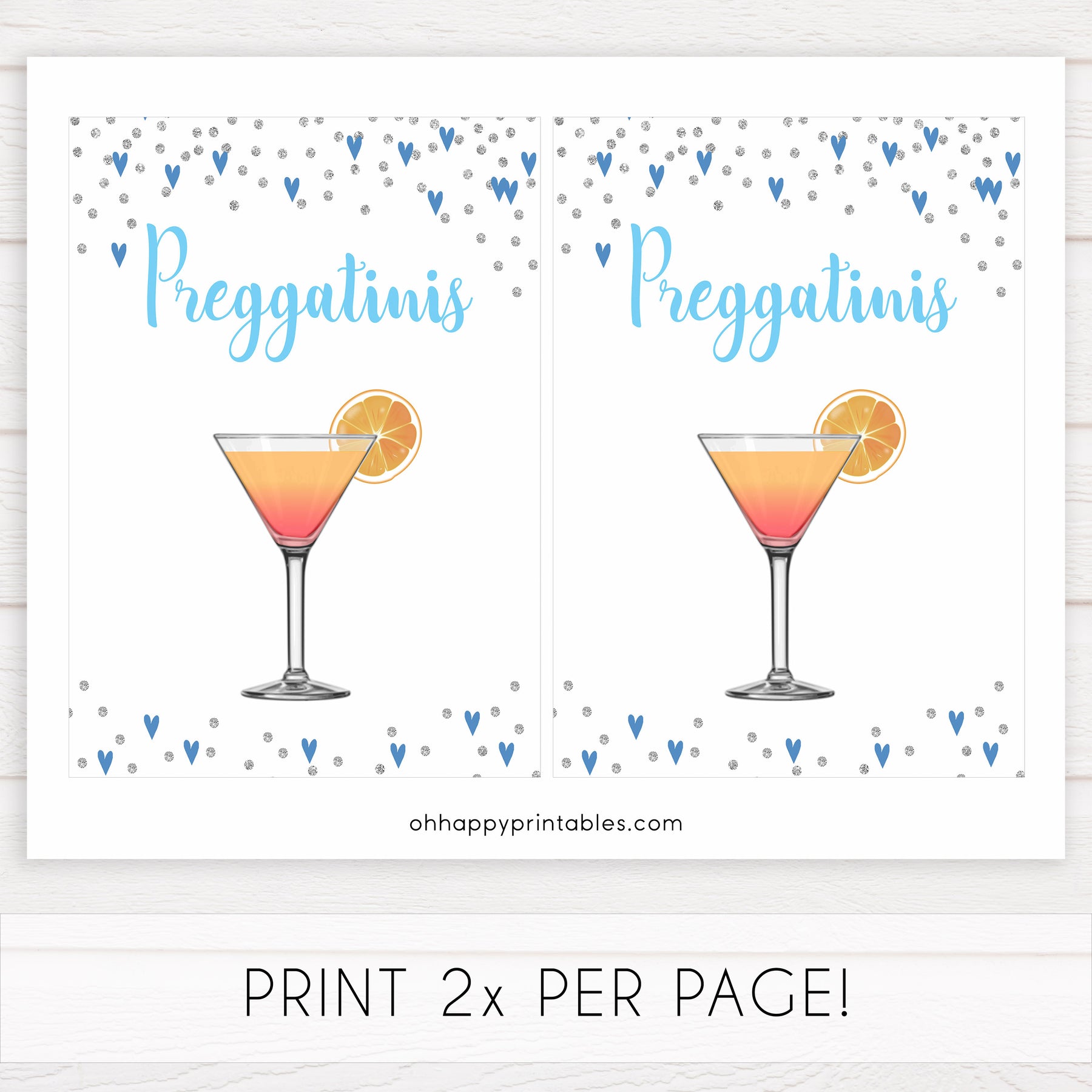 Add the finishing touch to your baby shower with this 'Preggatinis' table sign.