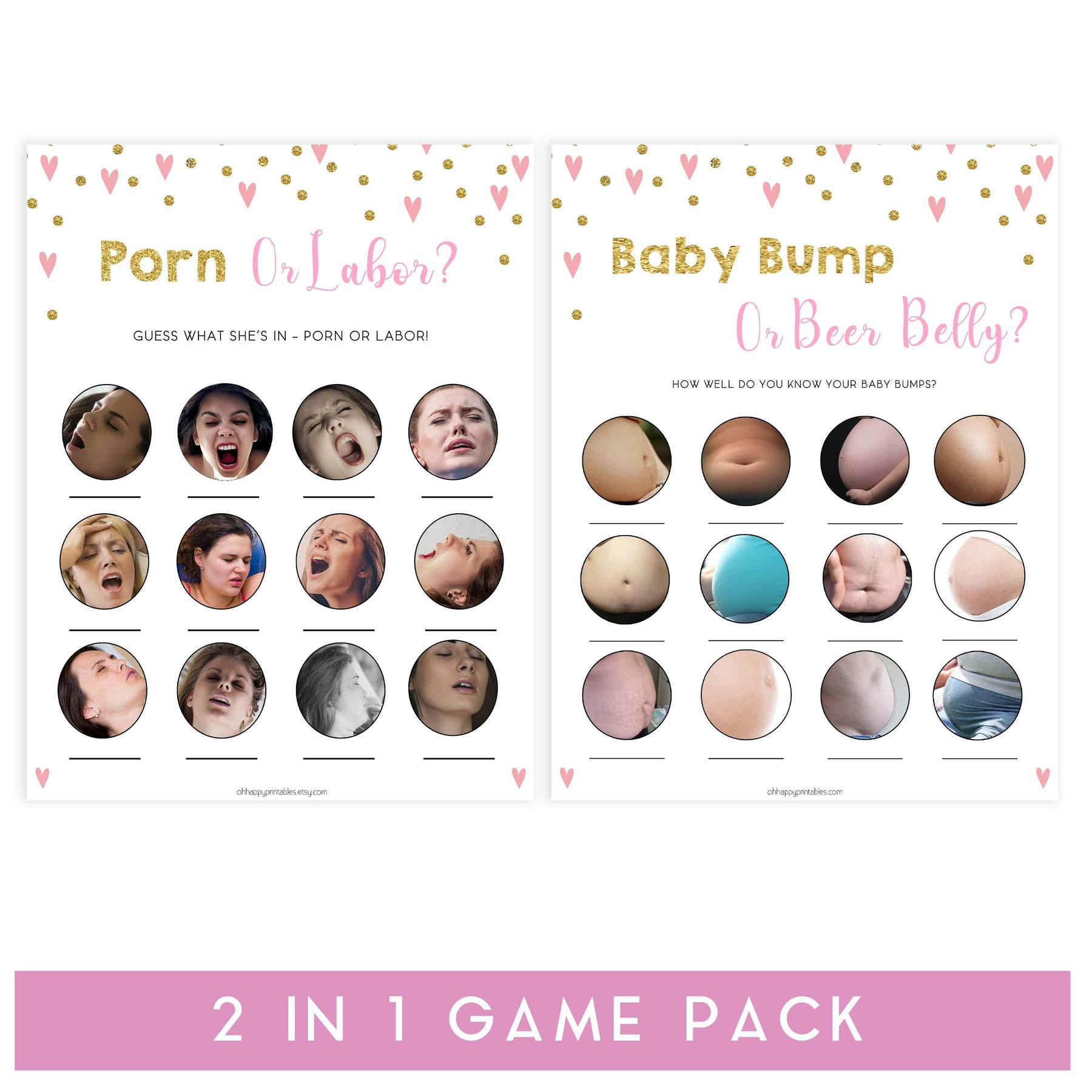 Get two of our most popular baby shower games, Porn or Labor and Baby Bump or Beer Belly in this amazing twin pack.