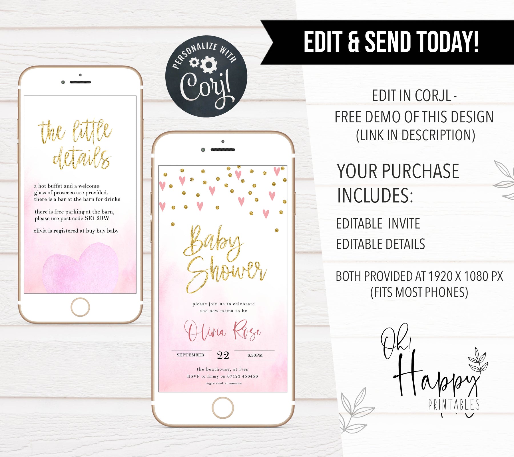 From our best-selling baby shower invitations, including a details card, it has everything your friends and family need to make it a party to remember. Download immediately and edit yourself, it couldn't be simpler!