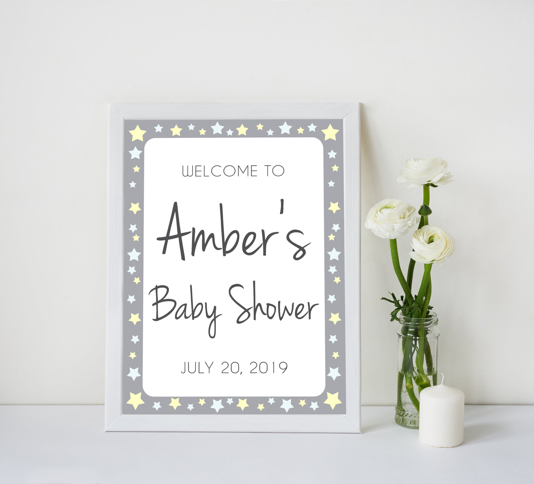 Add a little something extra to your baby shower with this 'Welcome Baby Shower Sign'