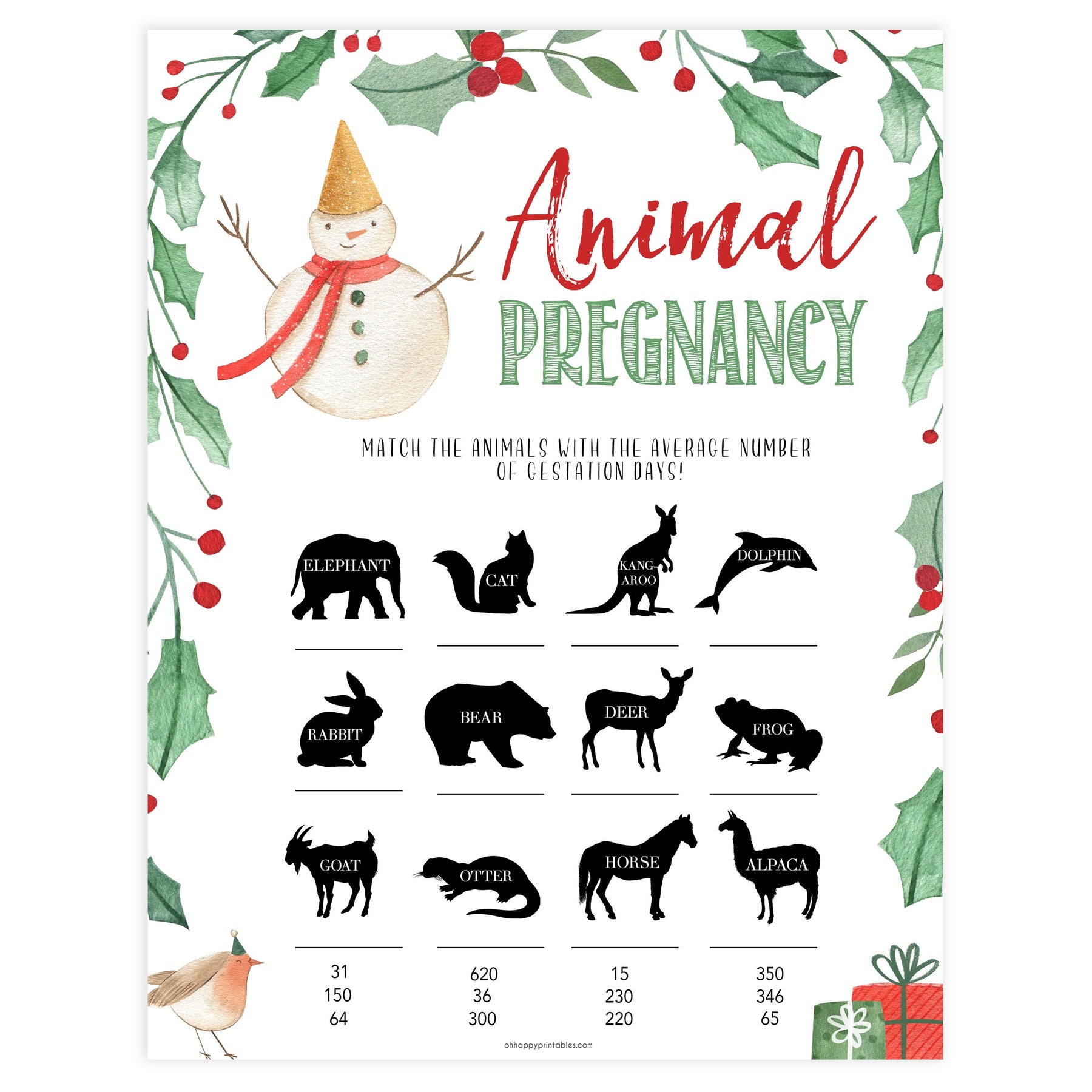 Get your friends to match the animal to the average pregnancy days. The person with the most matches wins. This is a fun one! All you need to do is download the game and print at home.