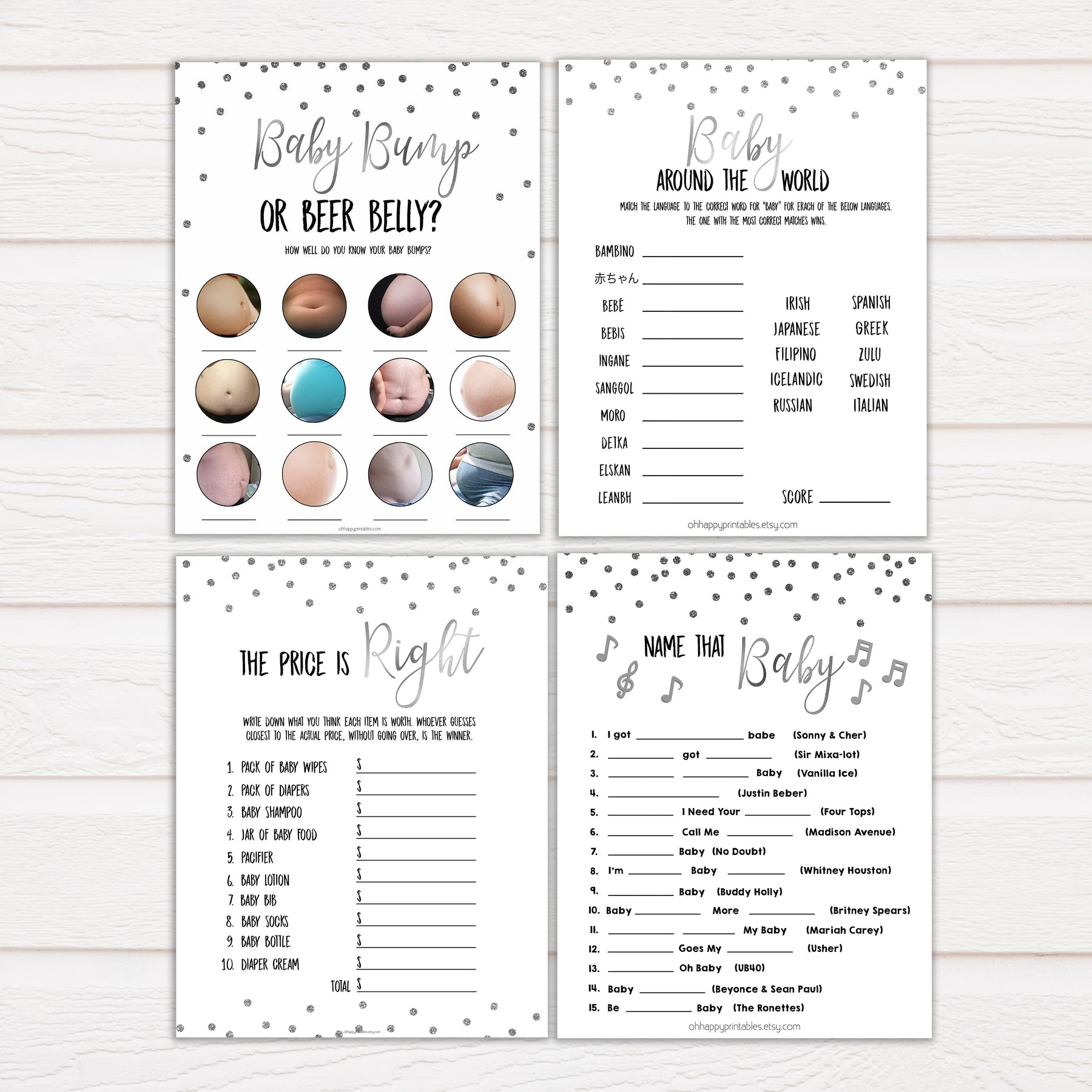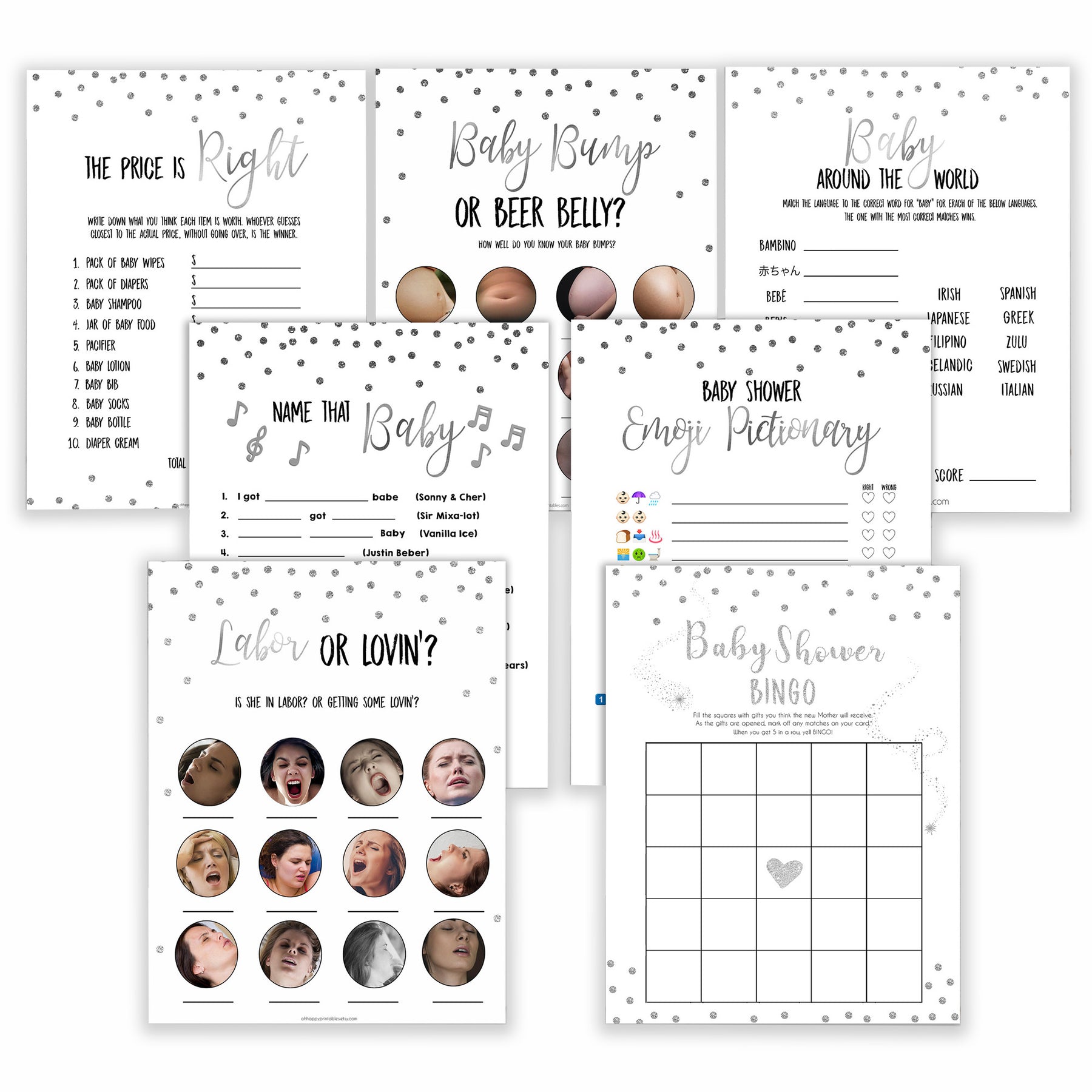 Get all your baby shower party games in one place with this gorgeous baby shower games pack. Featuring 7 of our most popular games, all you need to do is download and print at home.