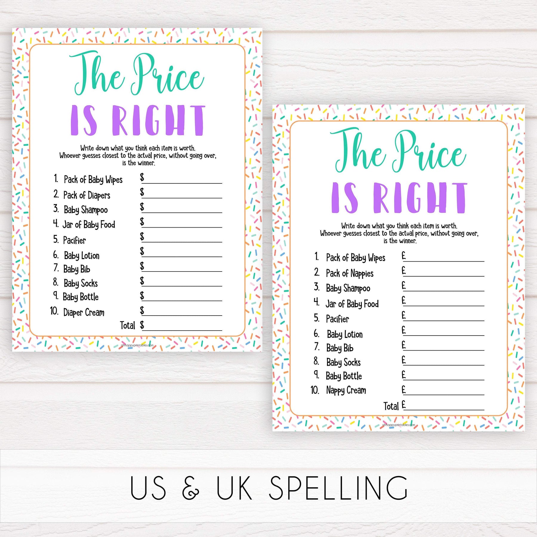 Get all your baby shower party games in one place with this gorgeous baby shower games pack. Featuring 7 of our most popular games, all you need to do is download and print at home.