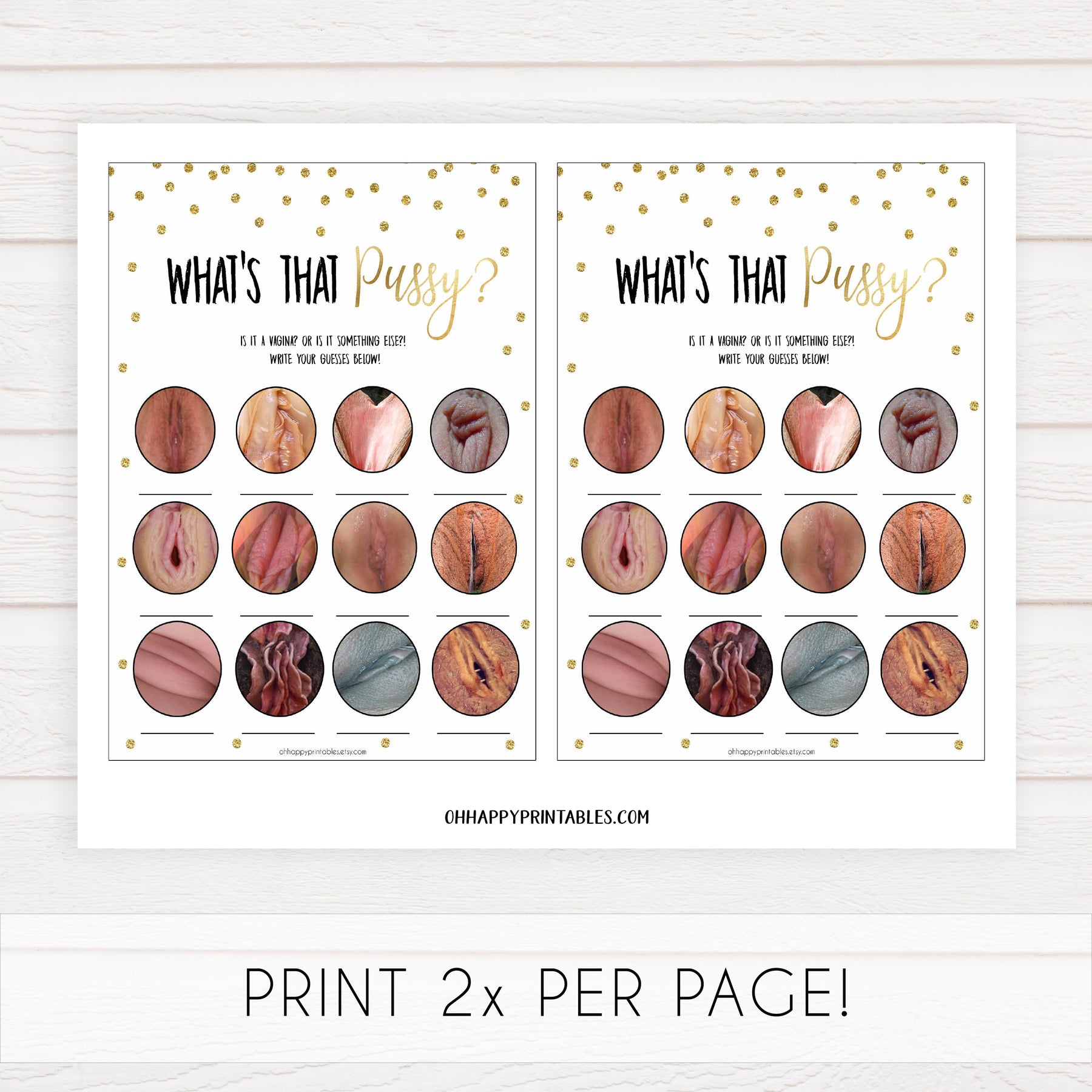 Definitely a game for the adults! As we all know, vaginas come in all shapes and sizes! This naughty bachelorette game is a great way to get everyone involved, as you try and guess which images are the real vaginas.
