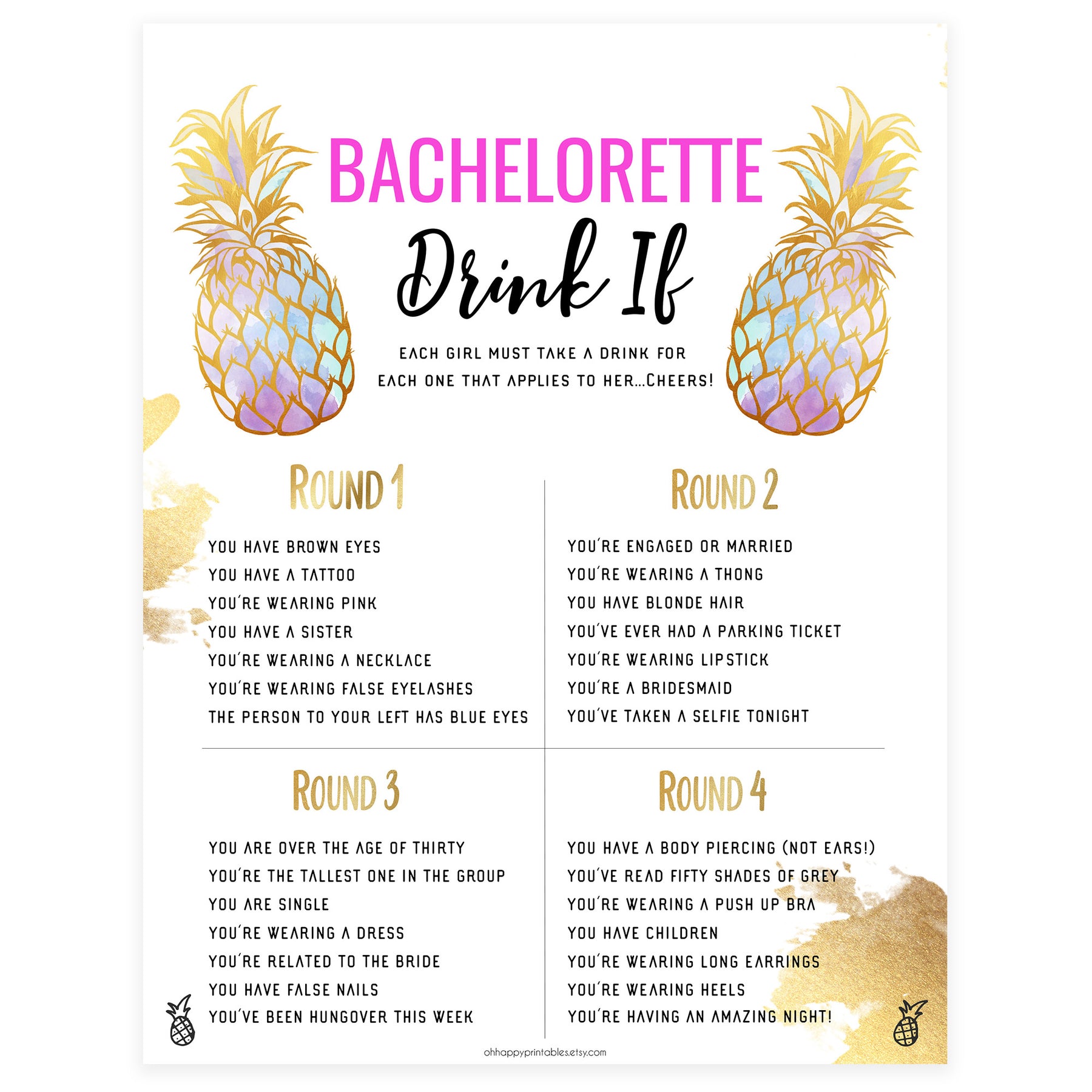 Get everyone in the mood to party with this hilarious Bachelorette Drink If game! Featuring a variety of fun scenarios, no one is getting away without drinking here!