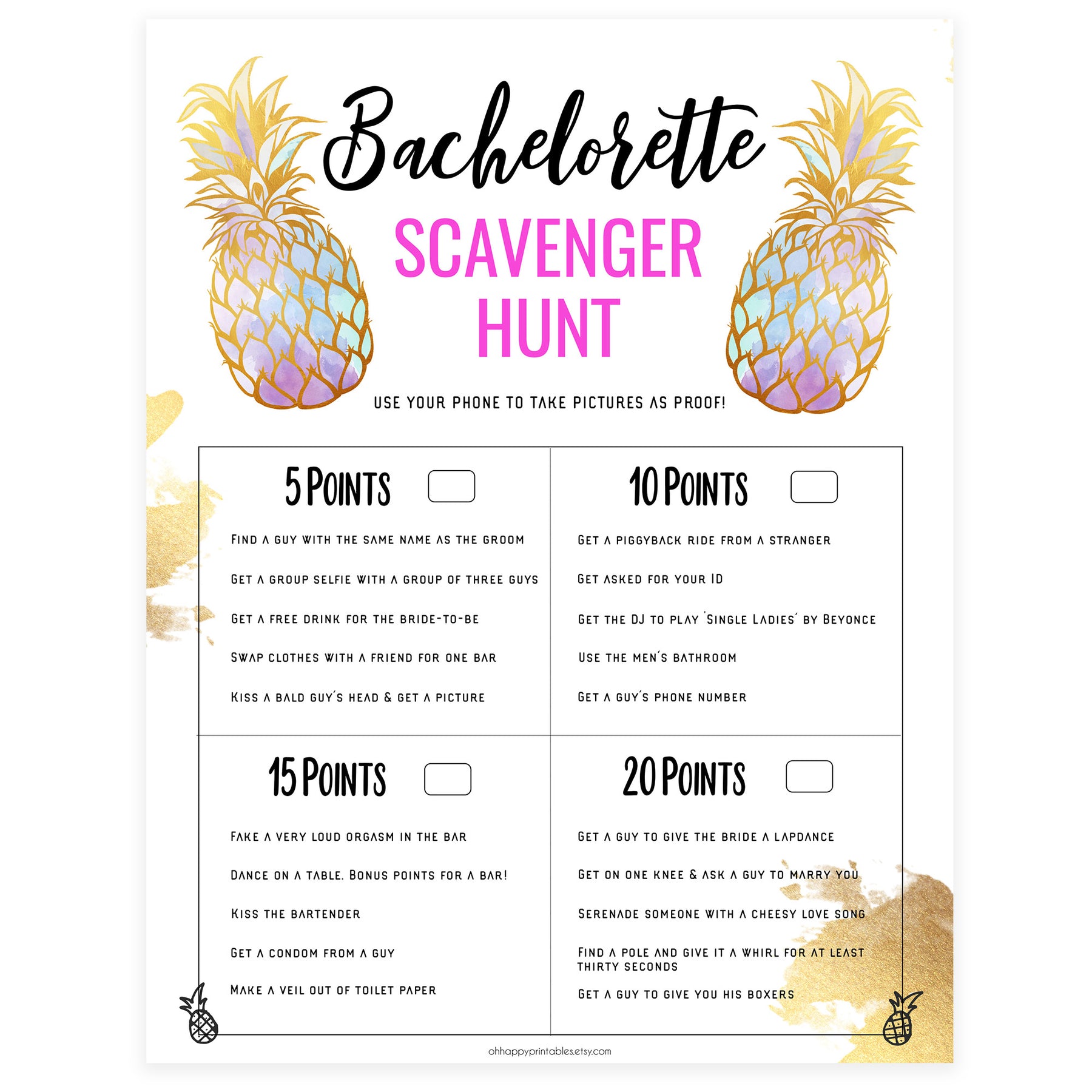 A scavenger hunt is an essential for any fun and wild Bachelorette party! Our printable scavenger hunt is the perfect addition to your night. Featuring a variety of challenges and dares, see who can get the most points by the end of the night. The harder the dare, the more points you earn!