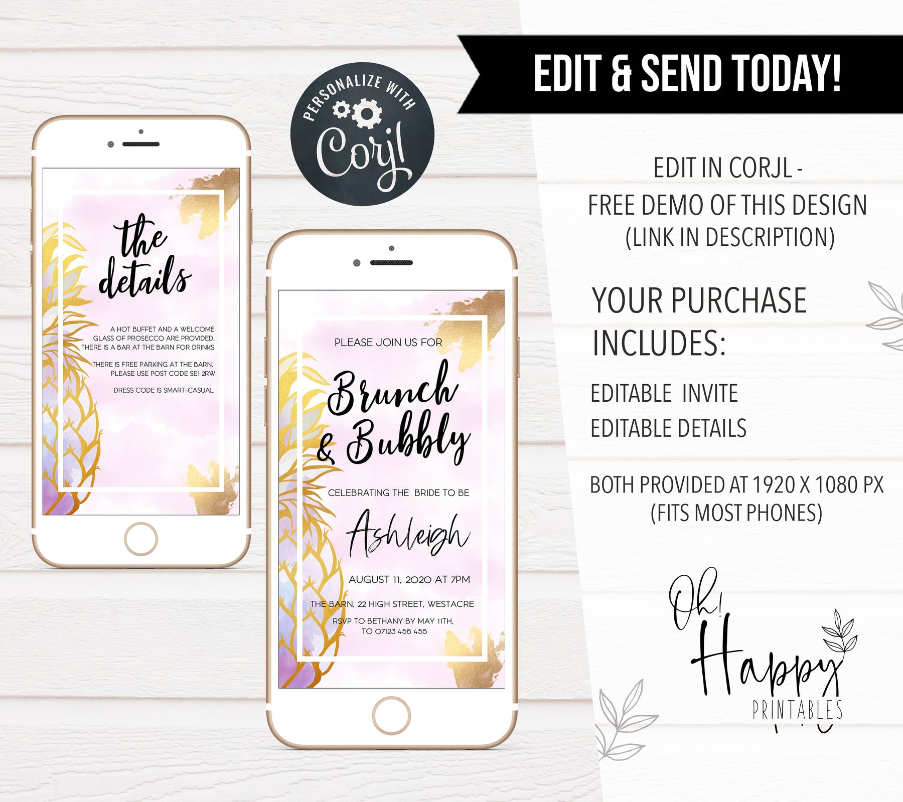 When it comes to sending out invitations for your bridal shower or bachelorette party, paper invitations can be costly and time-consuming. With Messenger and Whatsapp groups however, the digital invite is becoming a popular way to let all your guests know what's happening on the day. It's easy to send out, and even easier to update should your plans change. Simply download to your phone as an image, and send to the group. Let the party begin!