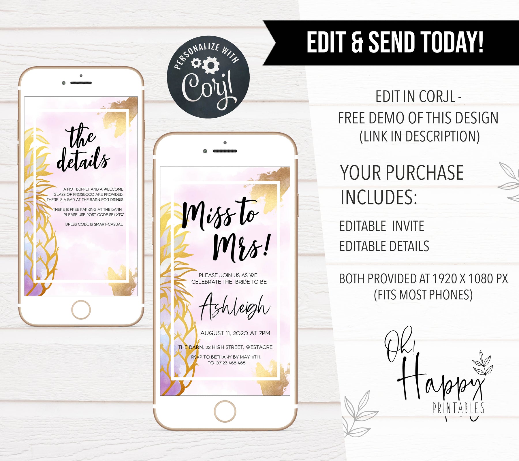 When it comes to sending out invitations for your bridal shower or bachelorette party, paper invitations can be costly and time-consuming. With Messenger and Whatsapp groups however, the digital invite is becoming a popular way to let all your guests know what's happening on the day. It's easy to send out, and even easier to update should your plans change. Simply download to your phone as an image, and send to the group. Let the party begin!