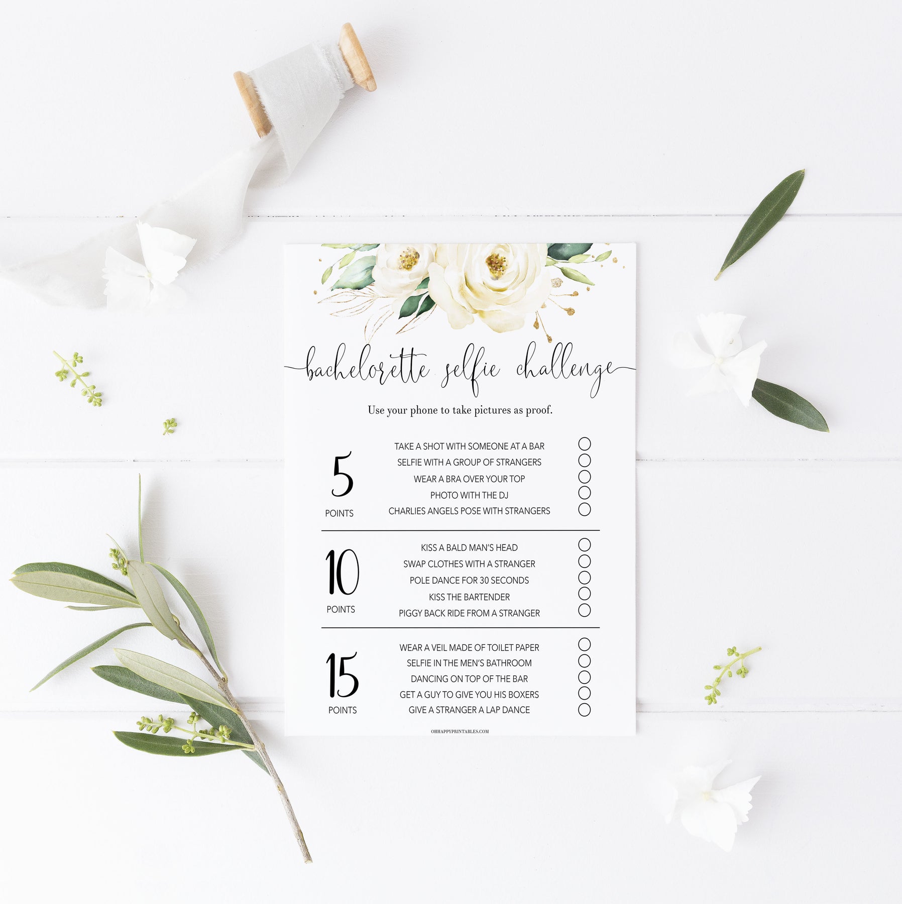 bachelorette selfie challenge game, Printable bachelorette games, floral bachelorette, floral hen party games, fun hen party games, bachelorette game ideas, floral adult party games, naughty hen games, naughty bachelorette games