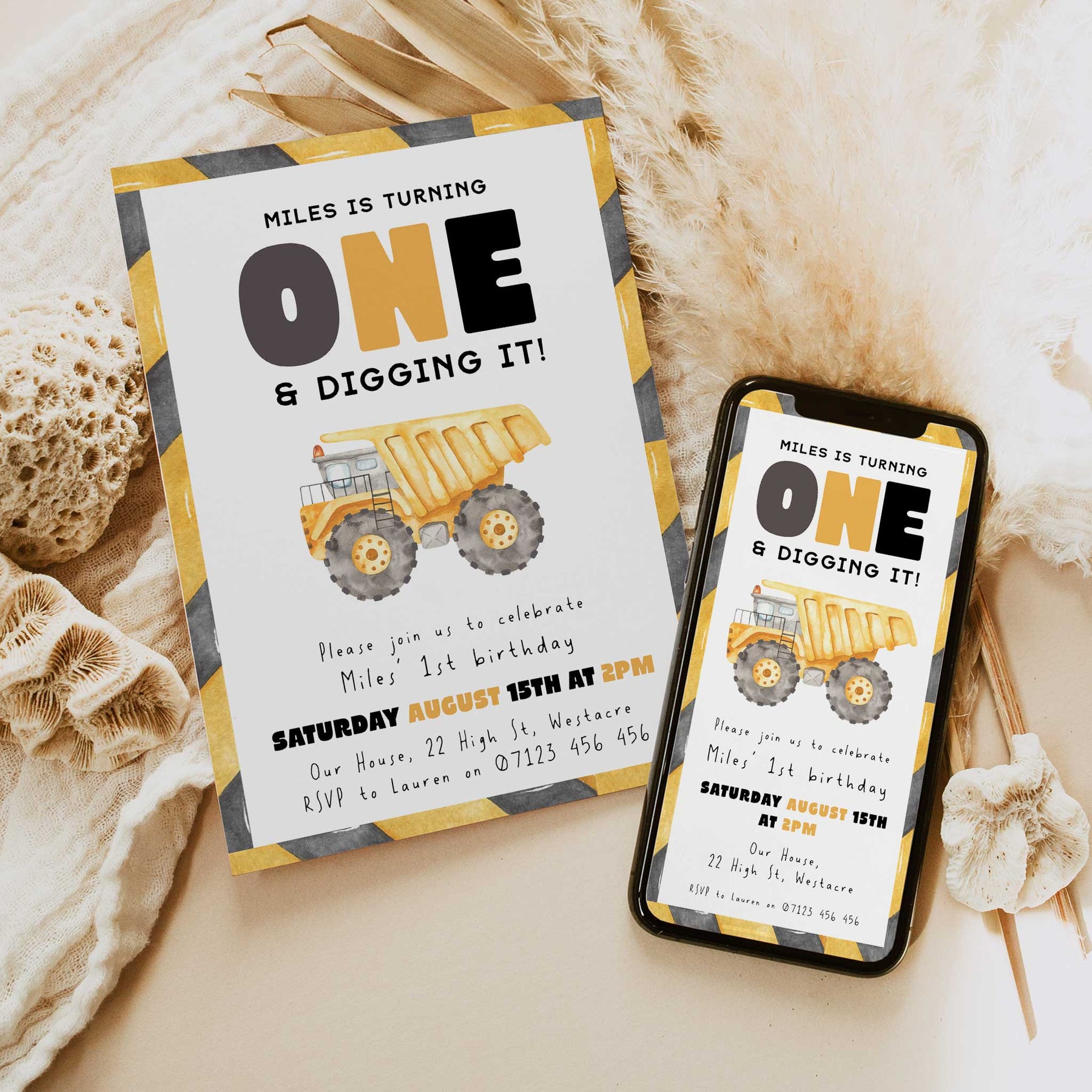 Get ready to dig into the fun! Our Little Digger First Birthday Invitation is perfect for your tiny construction fan’s big day. With construction trucks and bright digger-themed details, this editable invite set comes with a printable 5x7 version and a mobile-friendly file for easy sharing. Just add your little one’s name and party info, and you’re all set to build some birthday memories. Whether you're printing it out or sending it digitally, it's a fun and flexible way to invite friends and family to your child’s first big milestone.