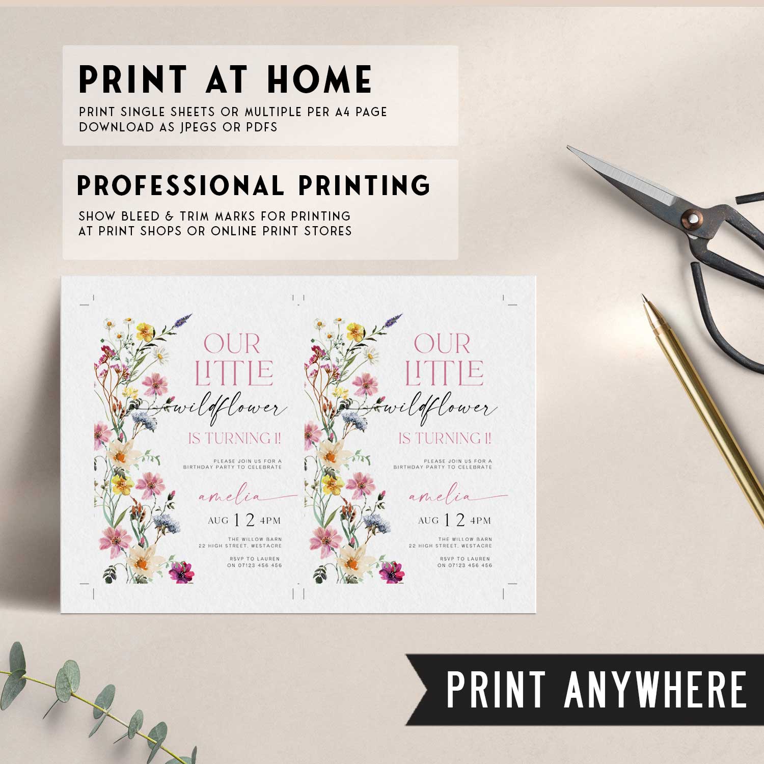 Make your little one's first birthday extra special with our Editable Little Wildflower First Birthday Invitation Set. This set includes both 5x7 printable invitations and mobile-friendly versions, with wildflower florals. Customise the text to add your child's name, event details, and heartfelt messages. Whether you choose to print or share digitally, our versatile set ensures convenience and flexibility.