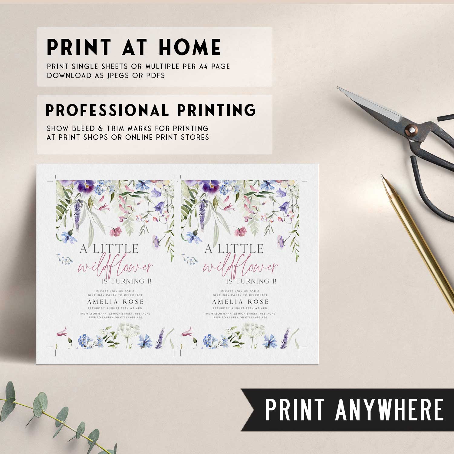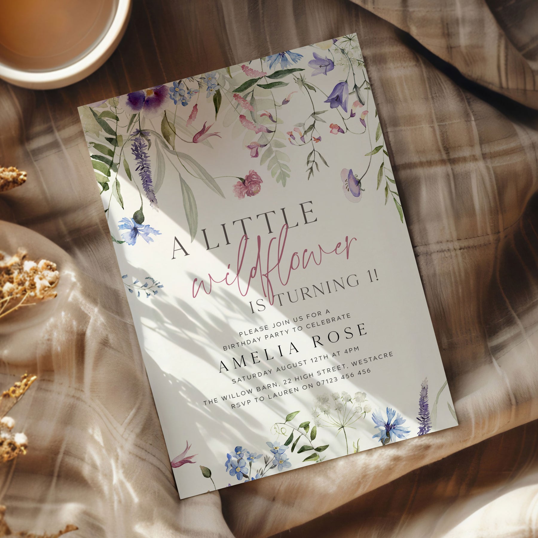 Make your little one's first birthday extra special with our Editable Little Wildflower First Birthday Invitation Set. This set includes both 5x7 printable invitations and mobile-friendly versions, with wildflower florals. Customise the text to add your child's name, event details, and heartfelt messages. Whether you choose to print or share digitally, our versatile set ensures convenience and flexibility.