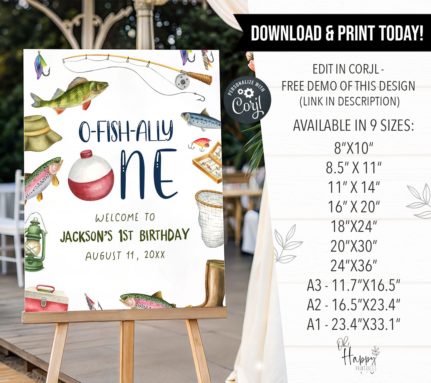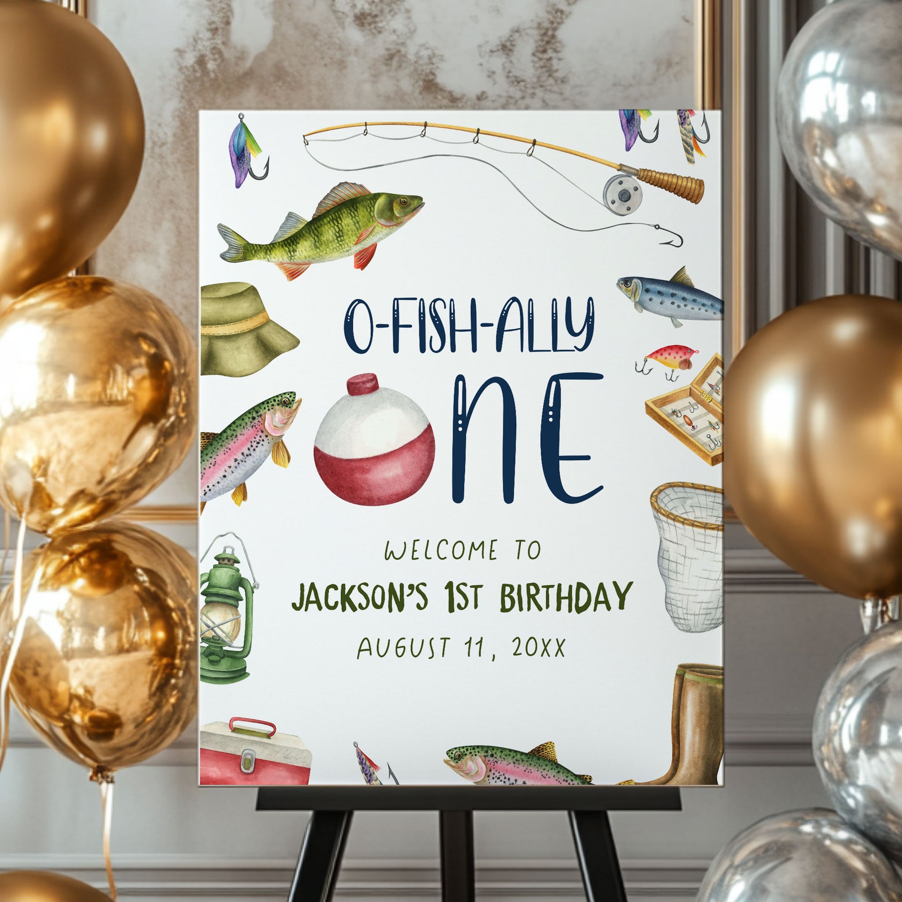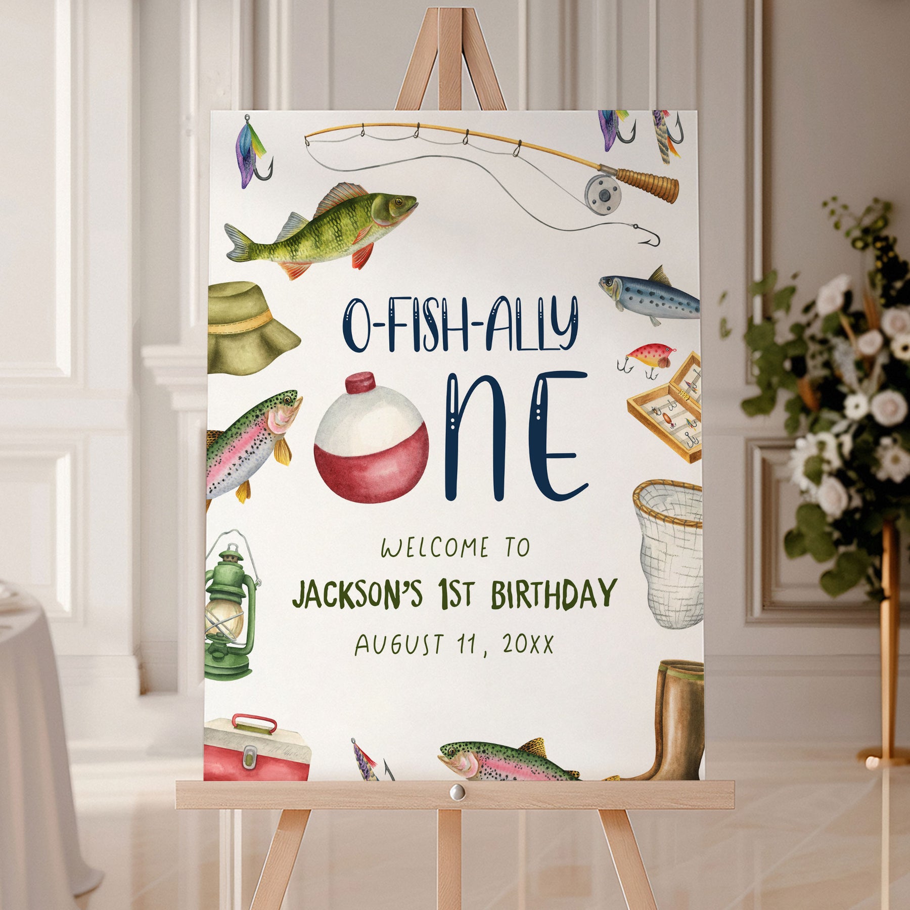 Celebrate your little one's special day with our 'O-Fish-Ally One' editable birthday welcome sign. Featuring fishing illustration, this editable sign adds a special touch to your celebration. Edit, download and print today, it couldn't be easier.