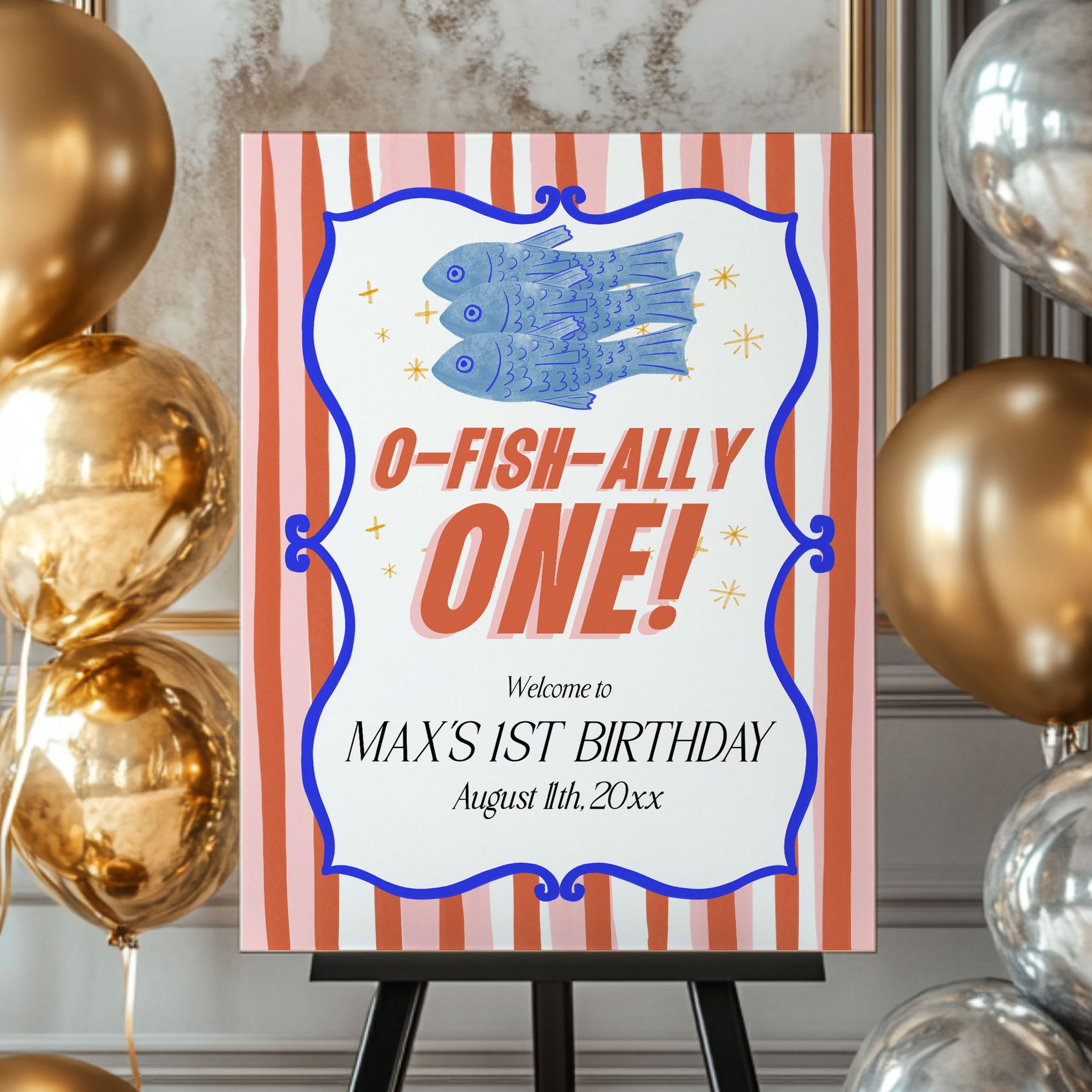 Celebrate your little one's special day with our 'O-Fish-Ally One' editable birthday welcome sign. Featuring fishing illustration, this editable sign adds a special touch to your celebration. Edit, download and print today, it couldn't be easier.