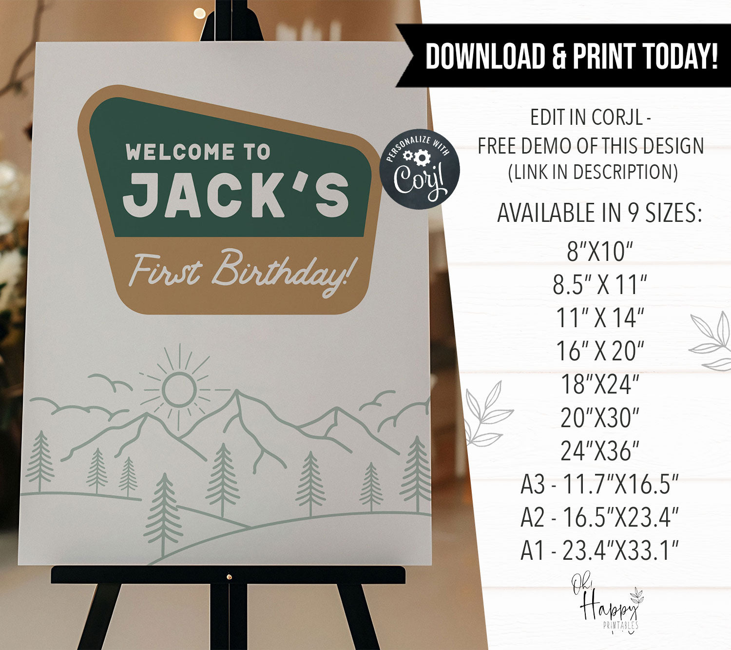 Celebrate your little one's special day with our woodland 'One Happy Camper' editable birthday welcome sign. Featuring woodland adventure theme, this editable sign adds a special touch to your celebration. Edit, download and print today, it couldn't be easier.