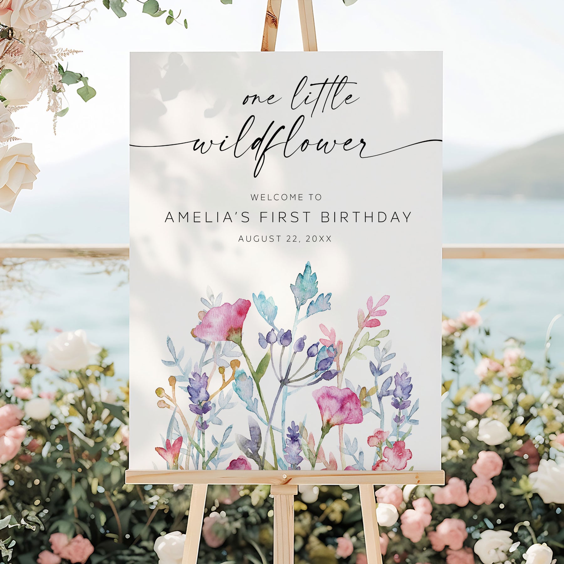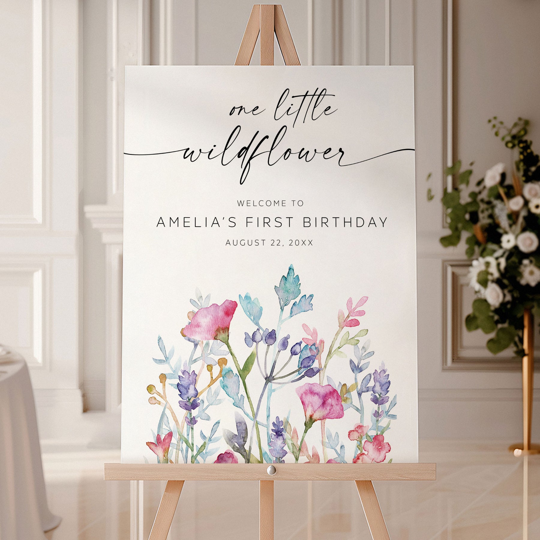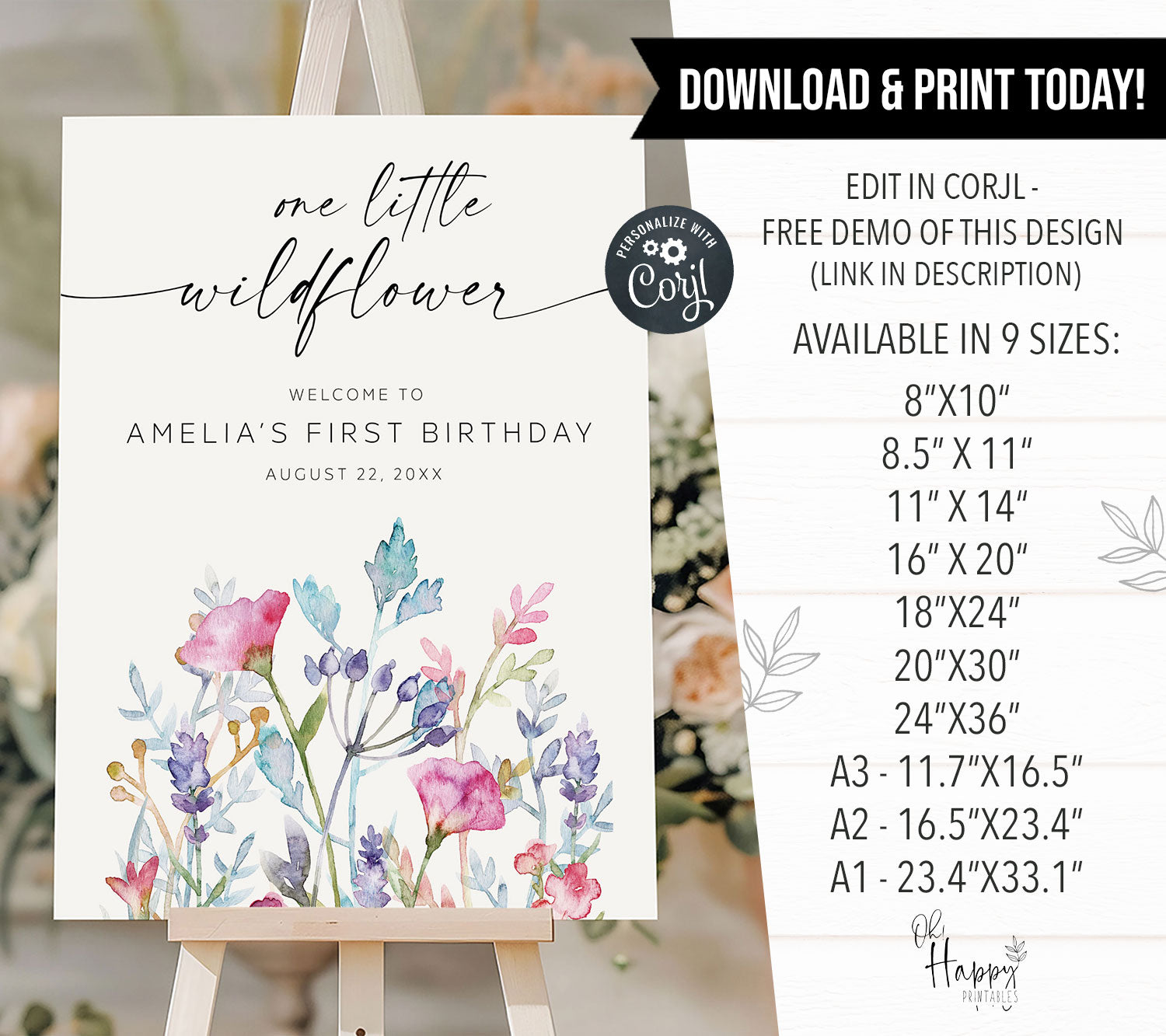 Celebrate your little one's first birthday day with our wildflower floral 'One Little Wildflower' editable birthday welcome sign. Featuring wildflower floral illustrations, this editable sign adds a special touch to your celebration. Edit, download and print today, it couldn't be easier.