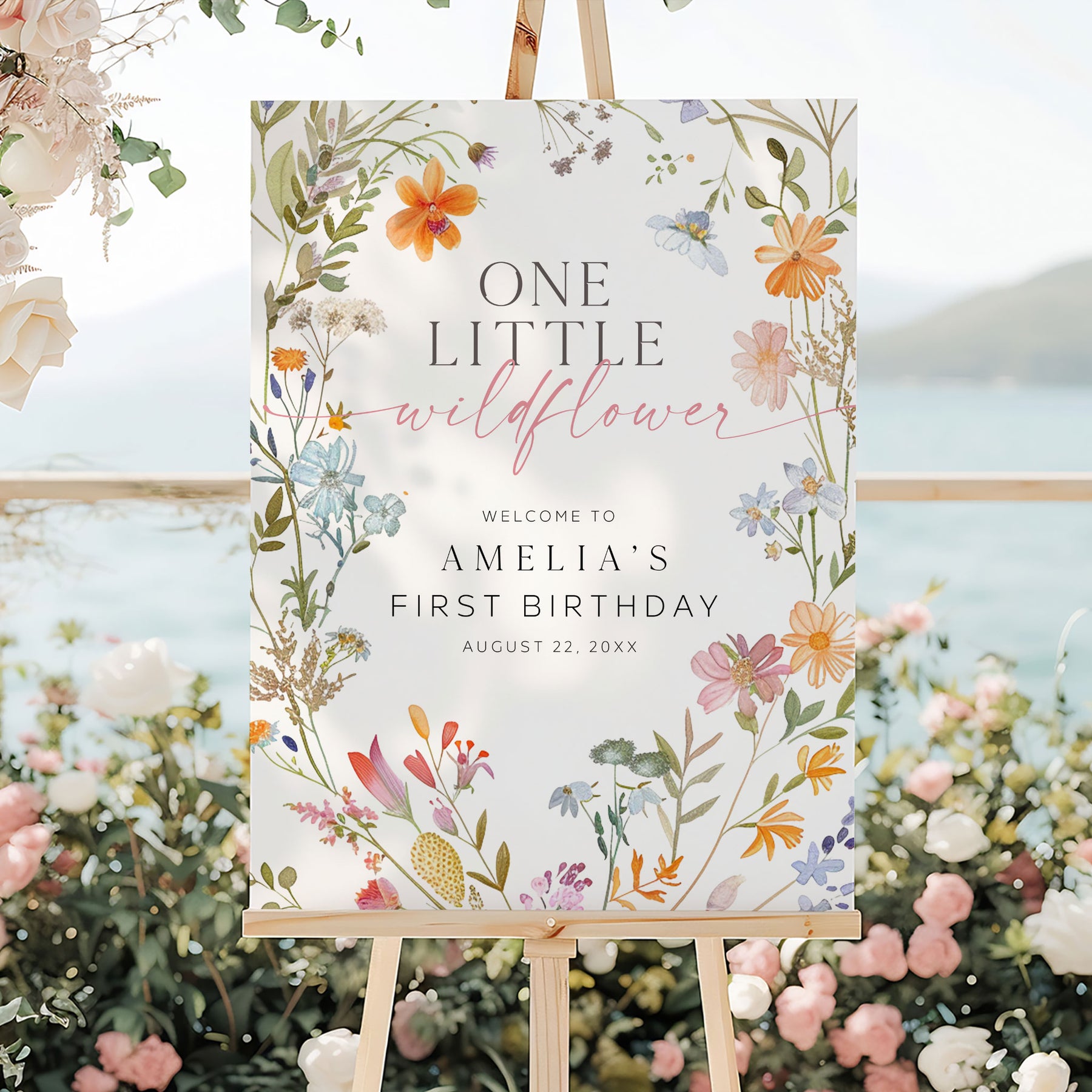 Celebrate your little one's first birthday day with our wildflower floral 'One Little Wildflower' editable birthday welcome sign. Featuring wildflower floral  illustrations, this editable sign adds a special touch to your celebration. Edit, download and print today, it couldn't be easier.