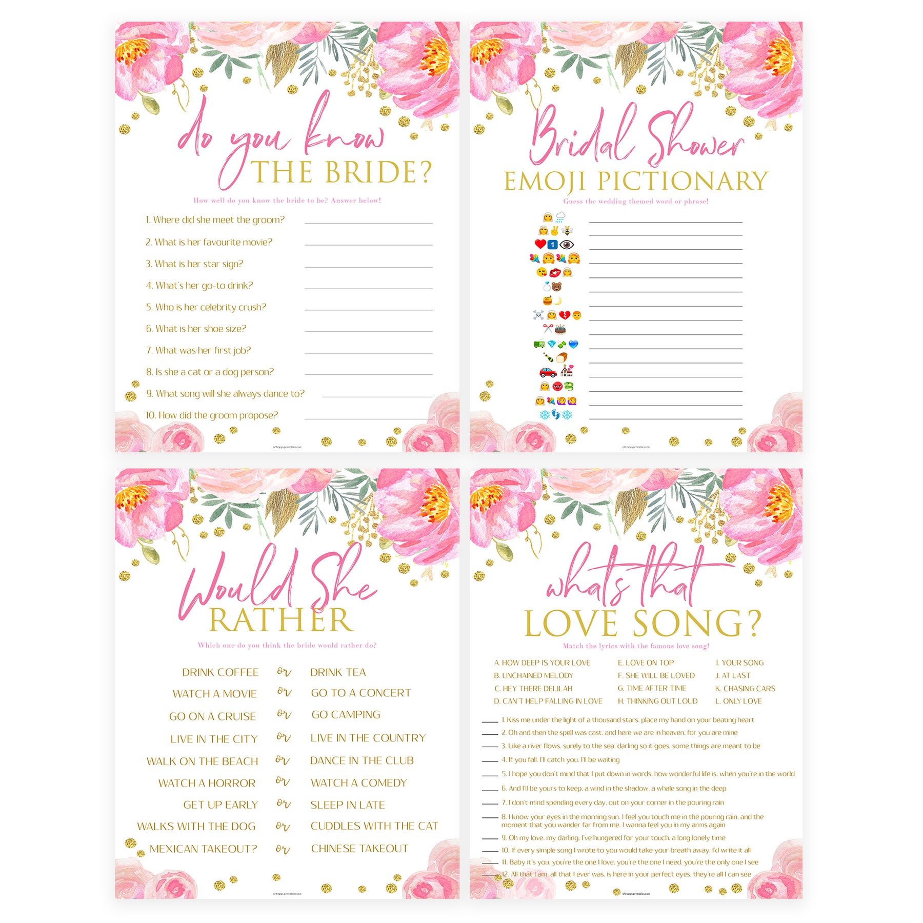 Featuring 4 of our best selling bridal shower games, this 4 pack bundle is a compact selection of games to complement your bridal shower. Simply download and print at home, it couldn't be easier.
