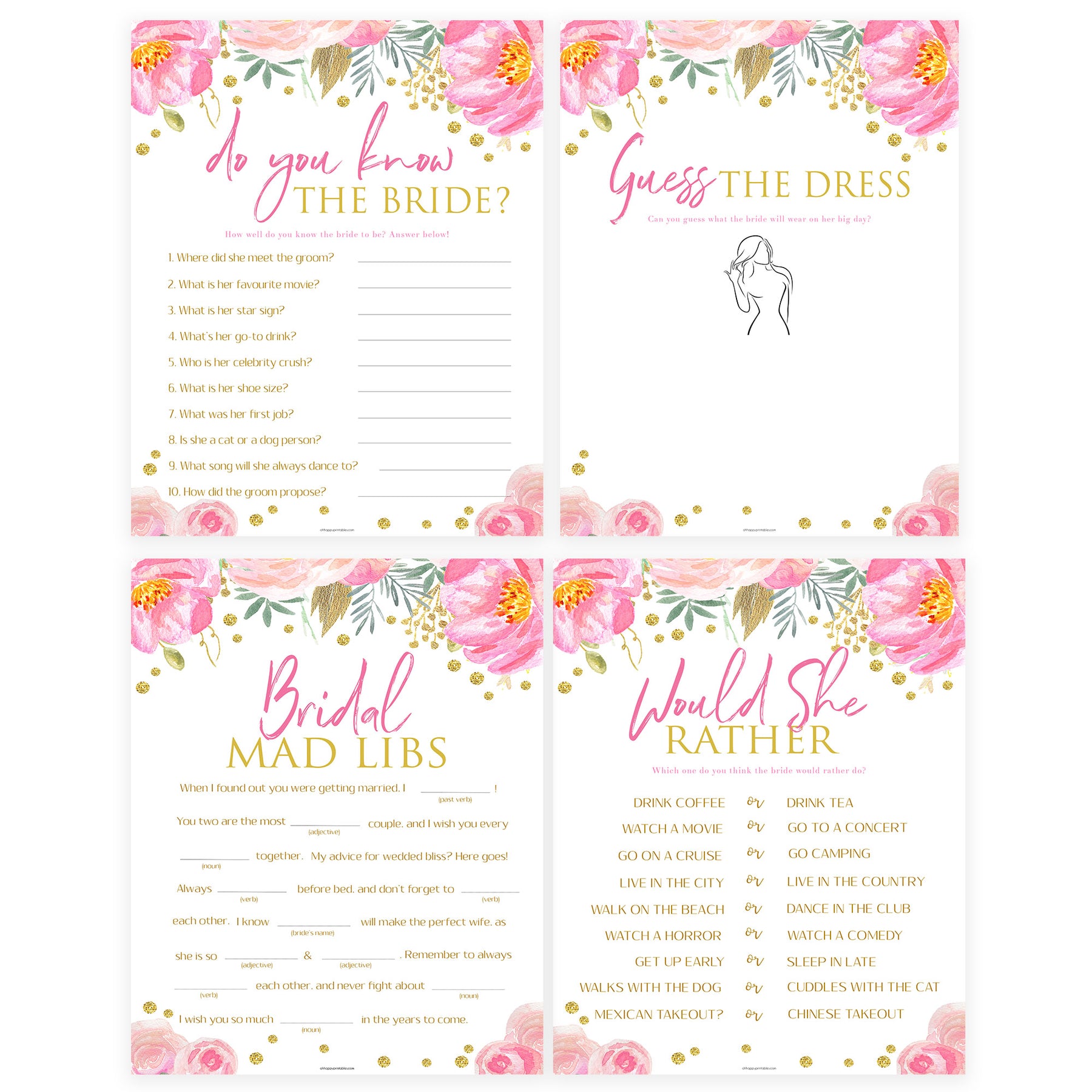 Featuring 8 of our best selling bridal shower games, this 8 pack bundle is a great selection of games all your guests will love. Simply download and print at home, it couldn't be easier.