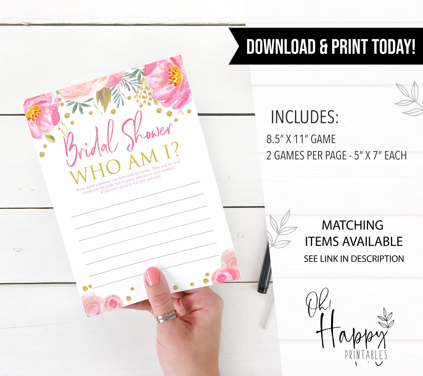 A great bridal shower game that's interactive and fun for everyone involved. Write down a memory with the bride, and she has to guess who it is! It's a great way for all the guests to get familiar with each other, and creates some fun storytimes along the way! Simply download and print at home, it couldn't be easier.