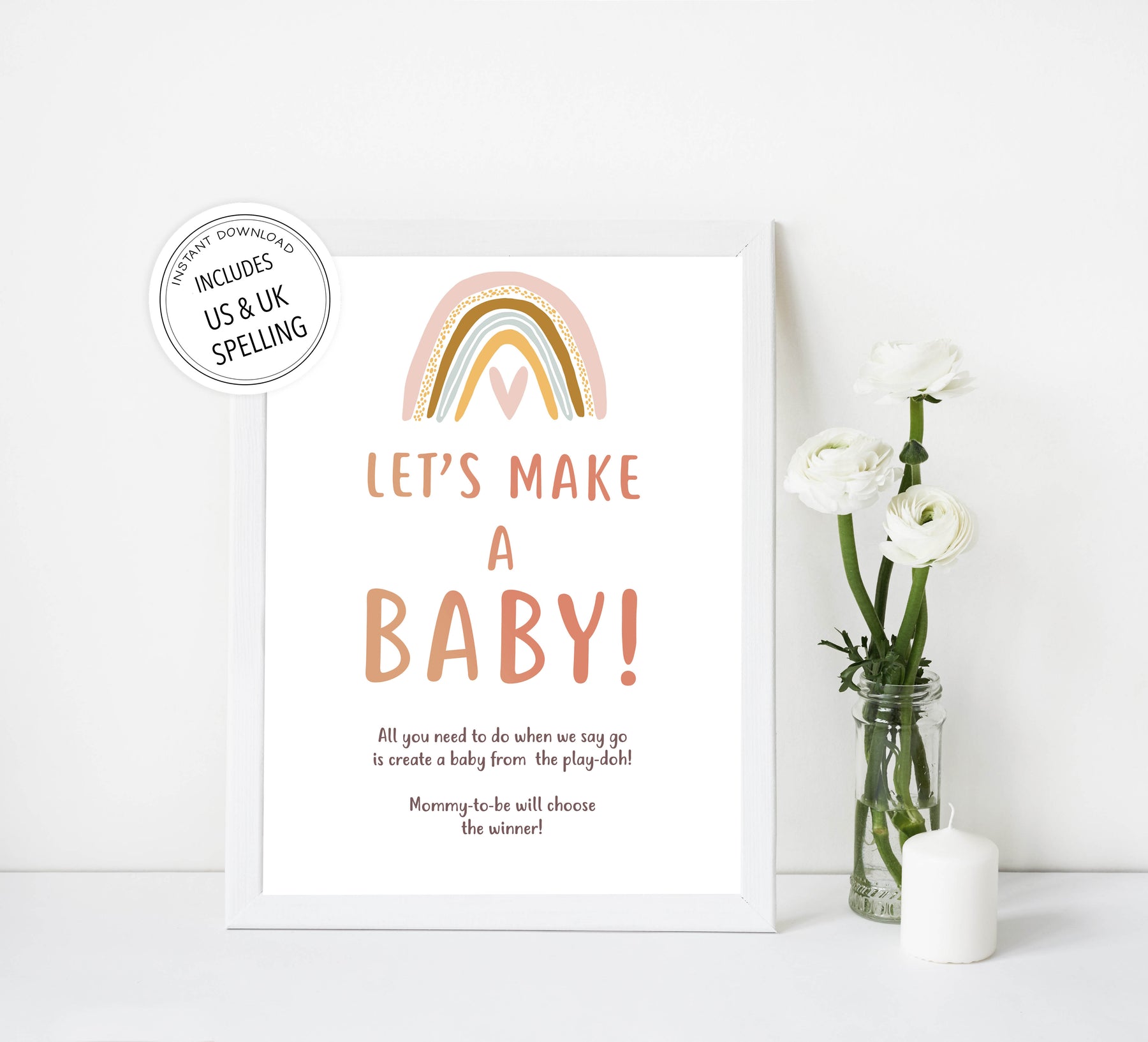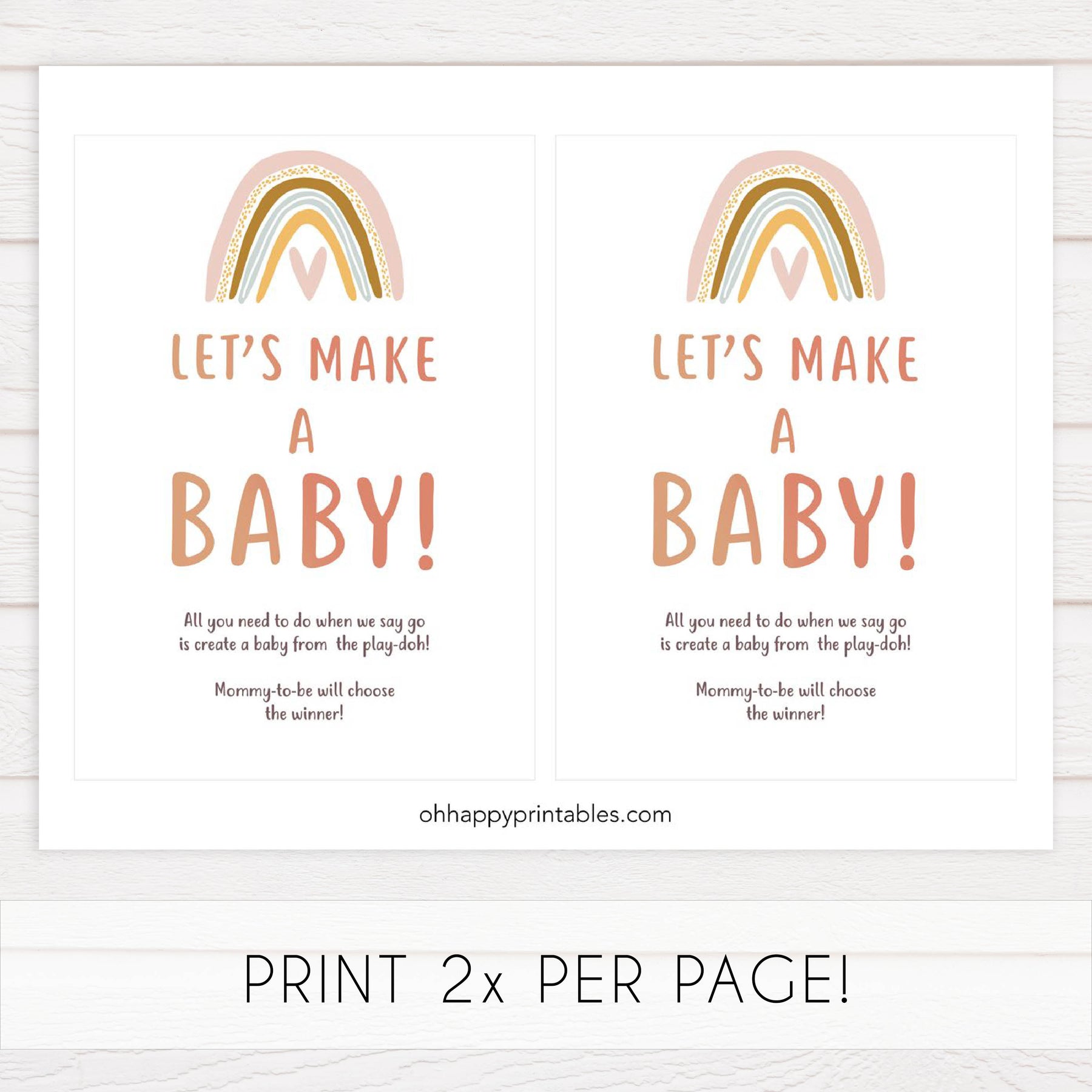 Have your friends make a baby out of Play-Doh. A great game to play at your baby shower, simply download and print at home.