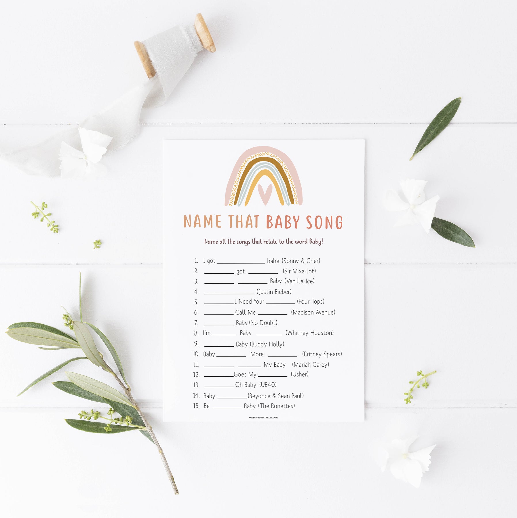 name that baby song game, Printable baby shower games, boho rainbow baby games, baby shower games, fun baby shower ideas, top baby shower ideas, boho rainbow baby shower, baby shower games, fun boho rainbow baby shower ideas