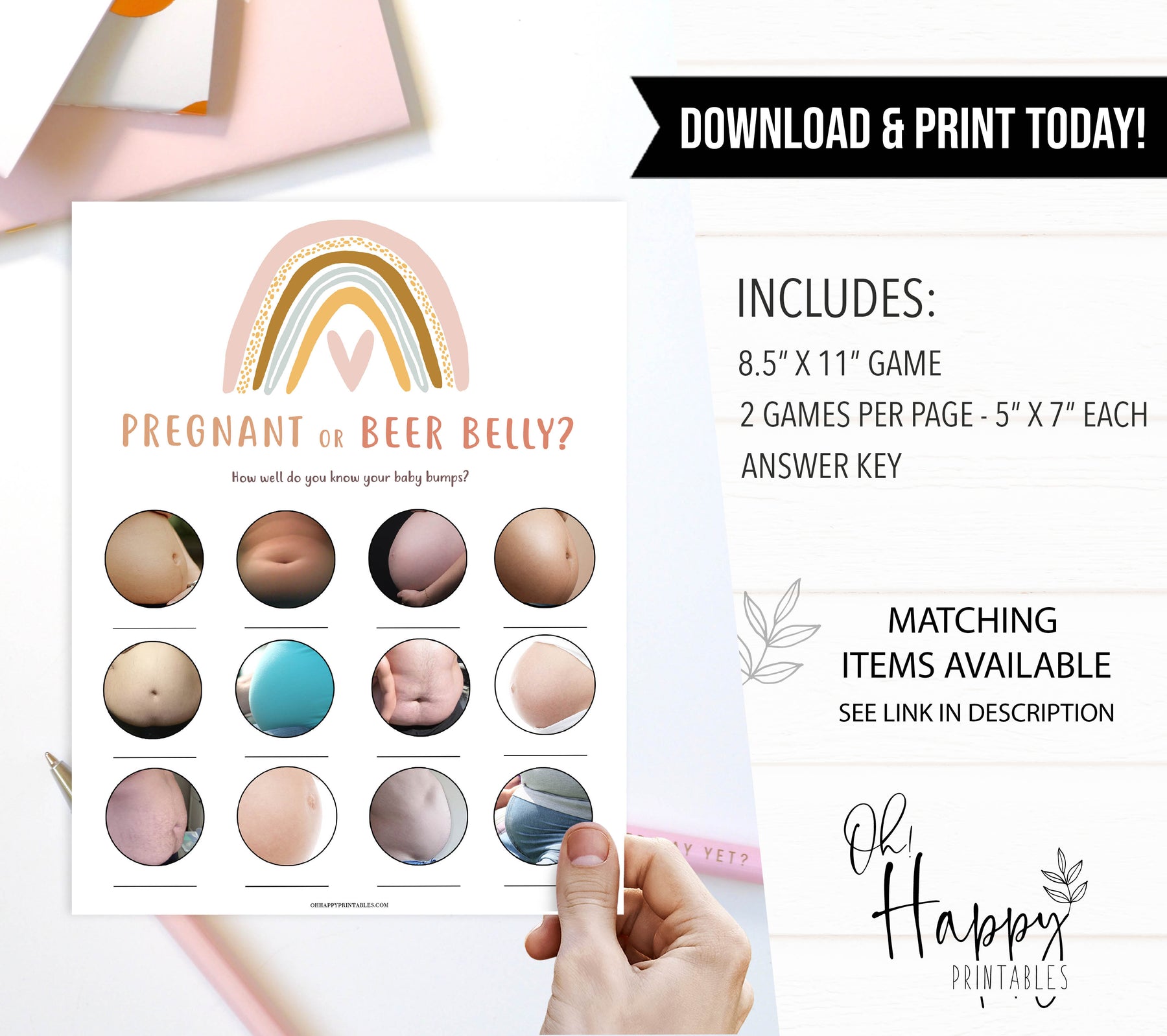pregnant or beer belly game, Printable baby shower games, boho rainbow baby games, baby shower games, fun baby shower ideas, top baby shower ideas, boho rainbow baby shower, baby shower games, fun boho rainbow baby shower ideas